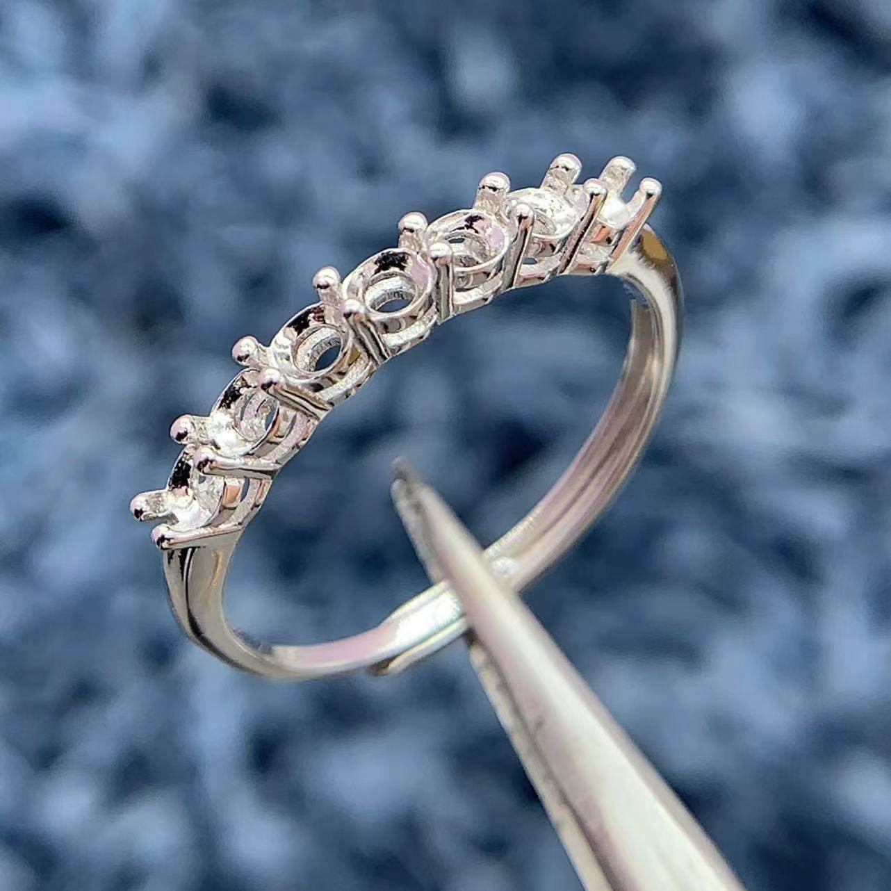 S925纯银戒指空托圆形3*3mm7粒9粒排戒银托彩蓝宝水晶石榴石配石