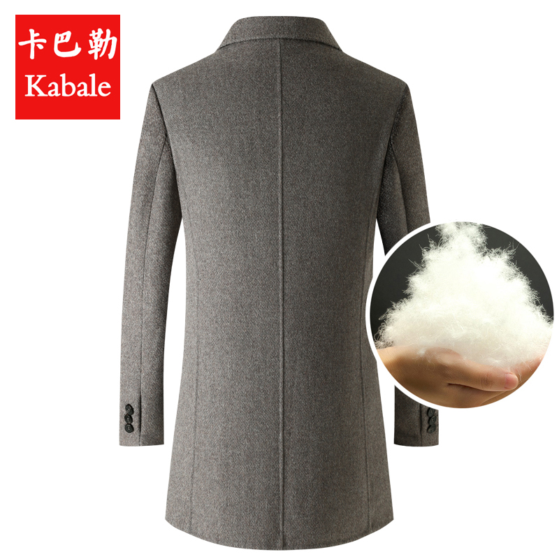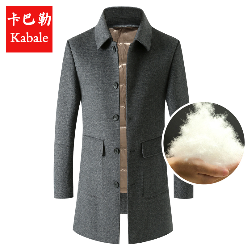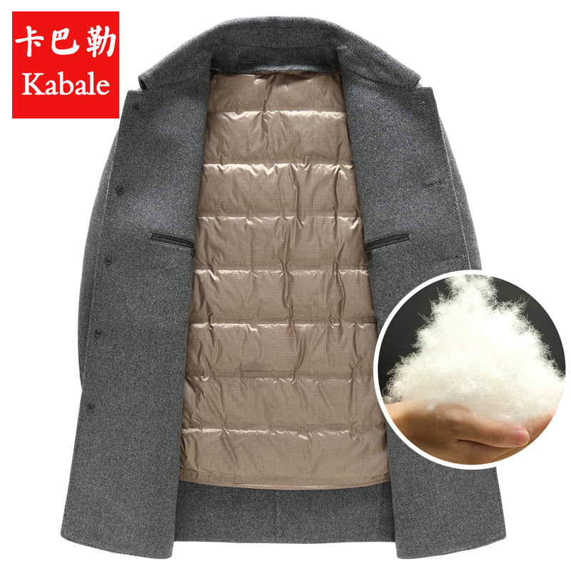 卡巴勒男装秋冬新款中年中长款双面羊毛呢子大衣加厚羽绒内胆外套