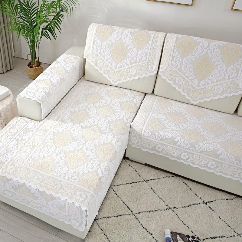 沙发扶手搭布加密防滑蕾丝坐垫欧式布艺四季靠背巾巾简约现代盖巾