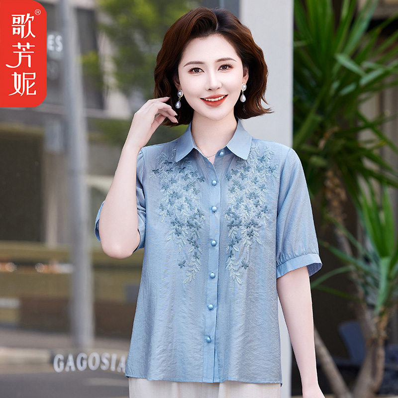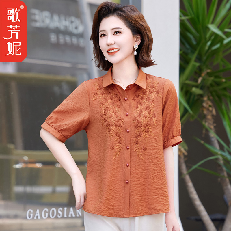 50岁衬衫中年女装短袖衬衣夏季新款新款中老年妈妈衬衫上衣小衫女