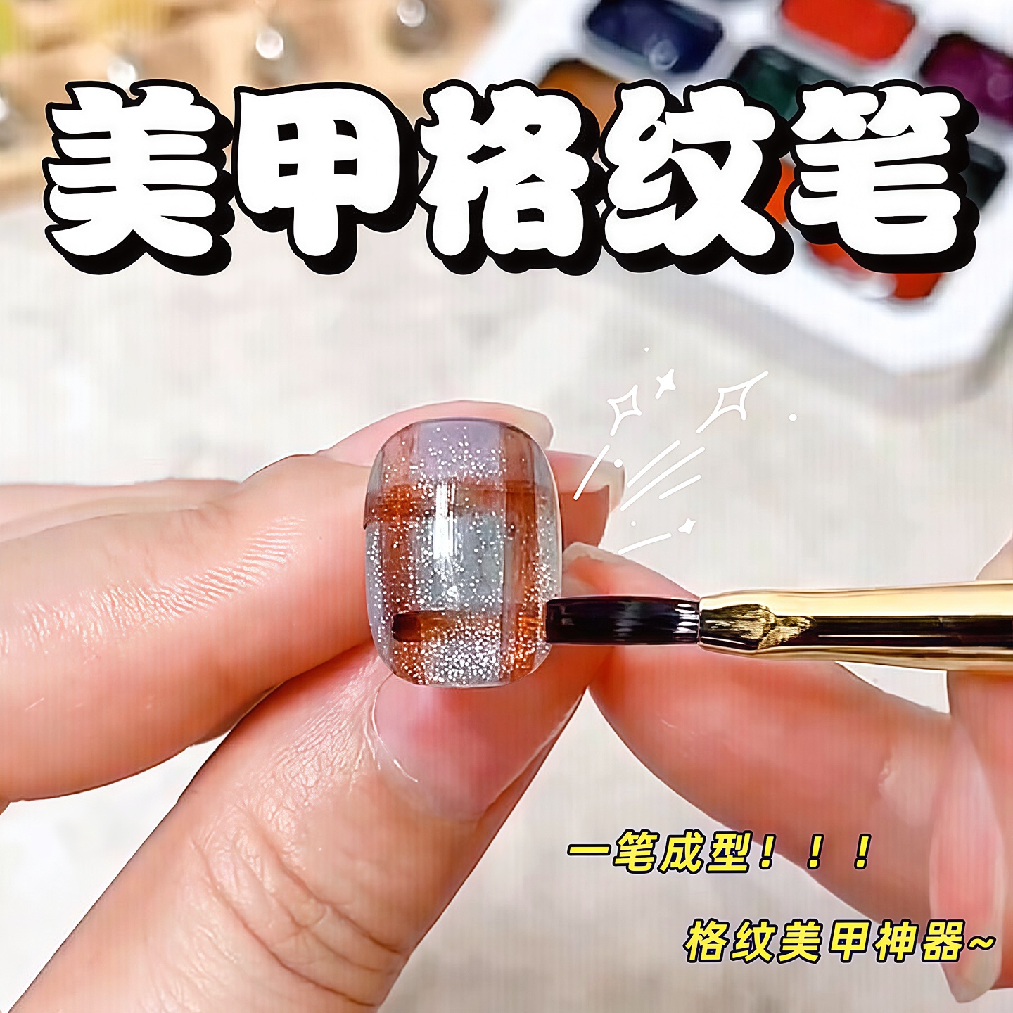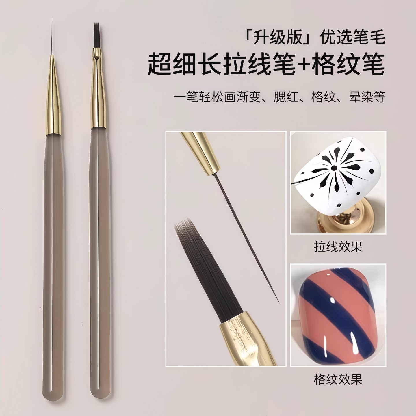 新款加长格纹美甲笔软弹柔韧细腻多功能拉线彩绘法式扫扫笔刷工具