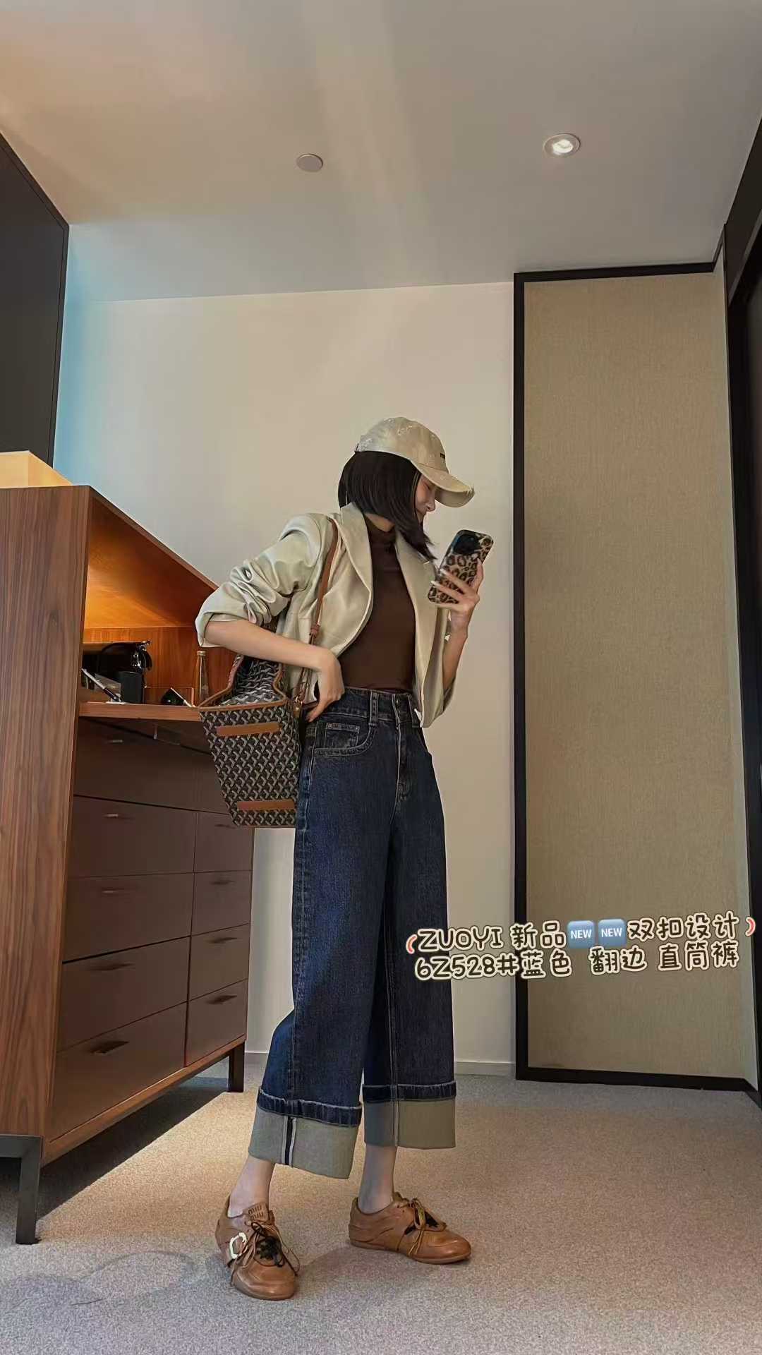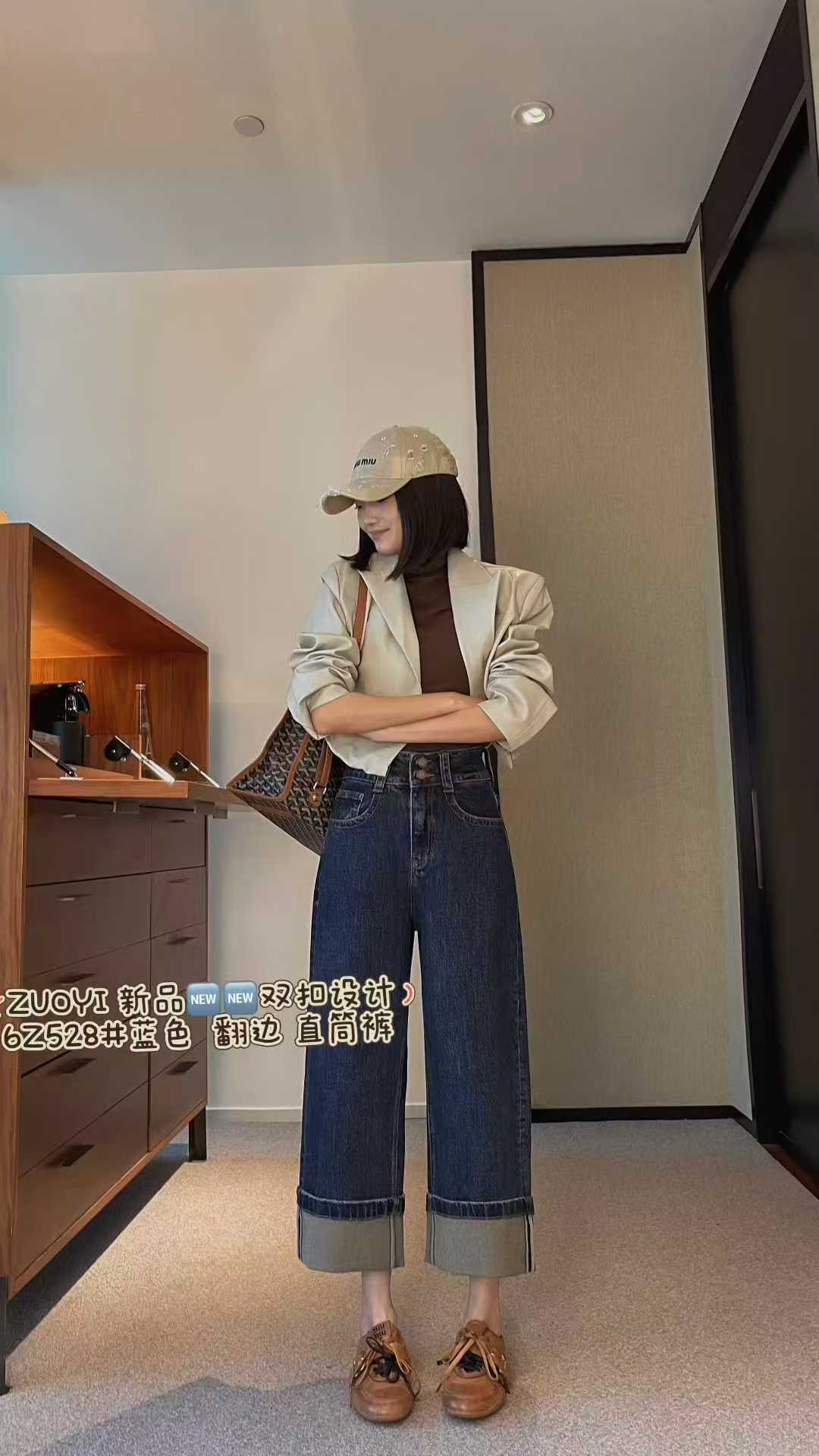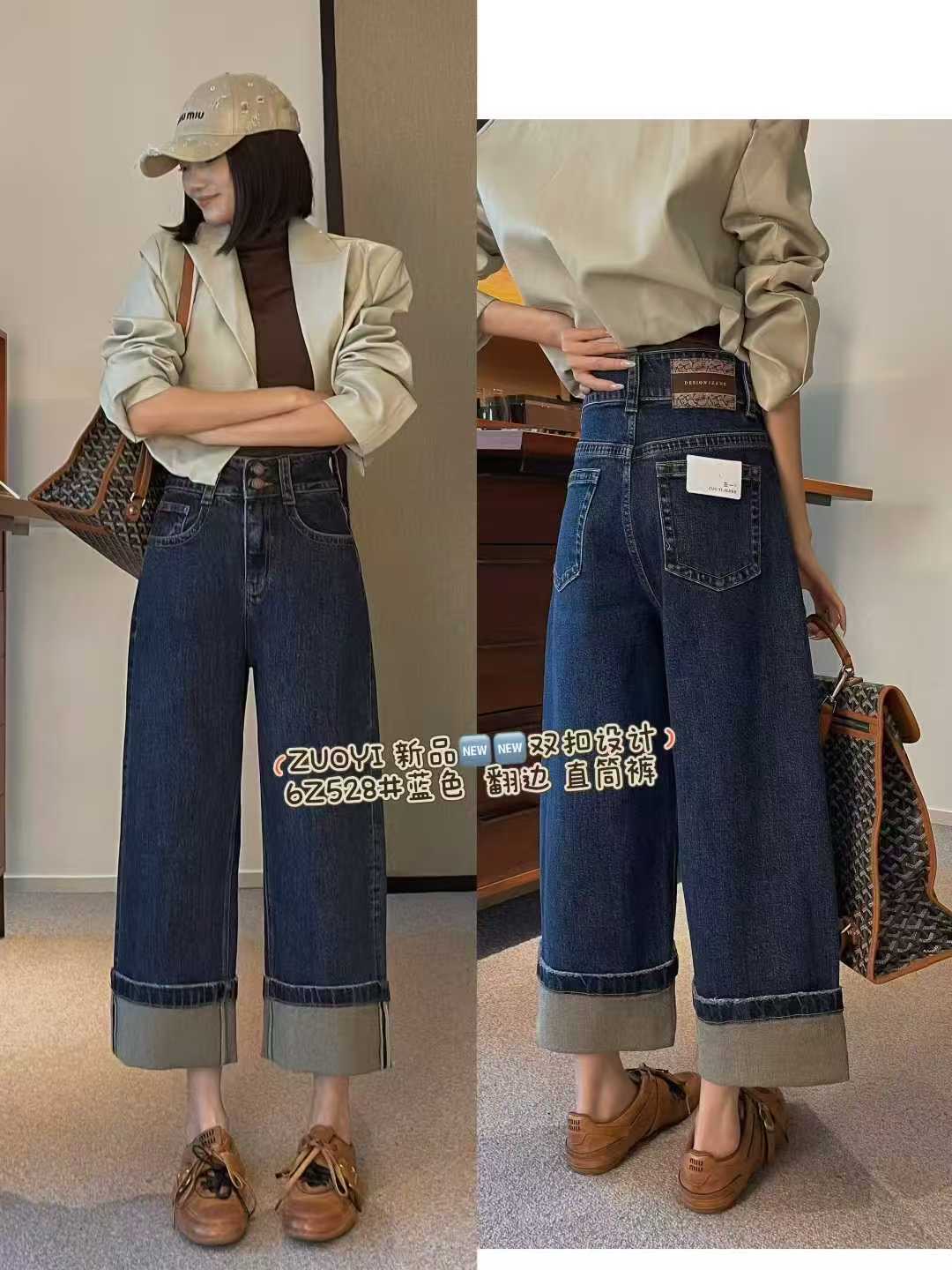 左一6z528高腰显瘦翻边宽松直筒阔腿牛仔裤女2025秋季新款