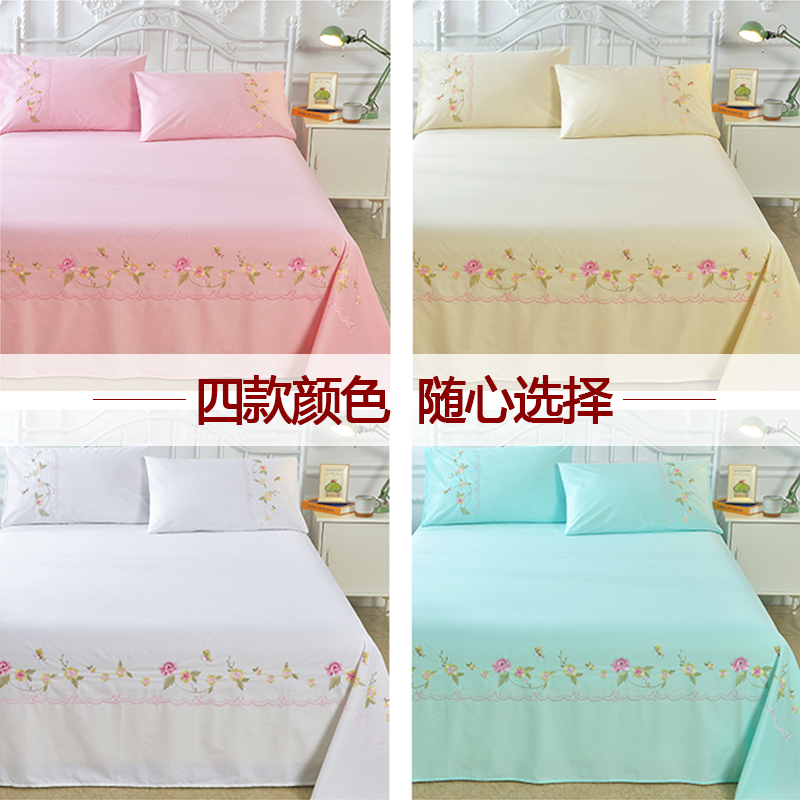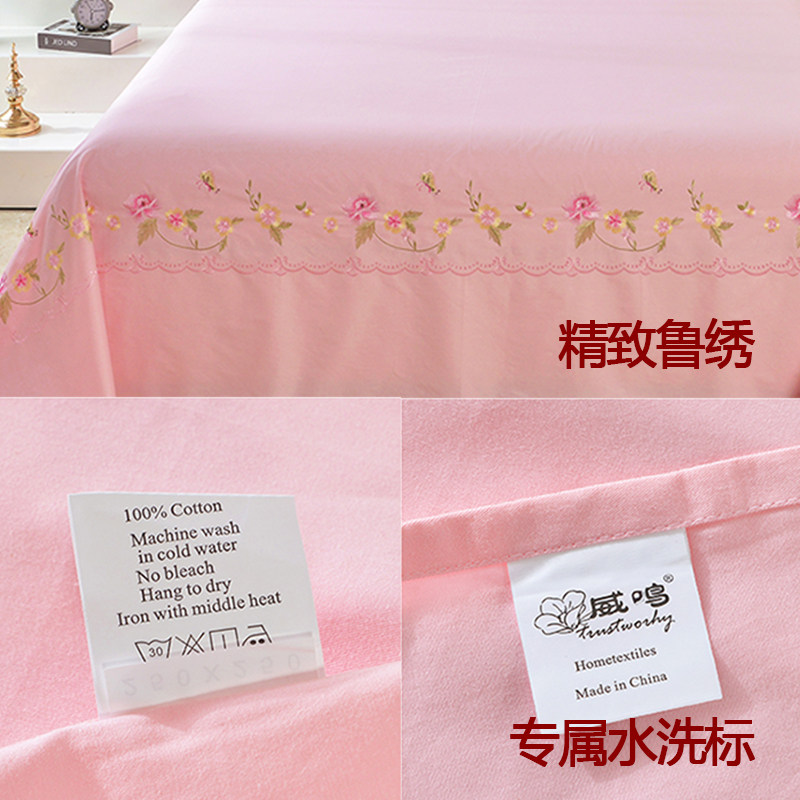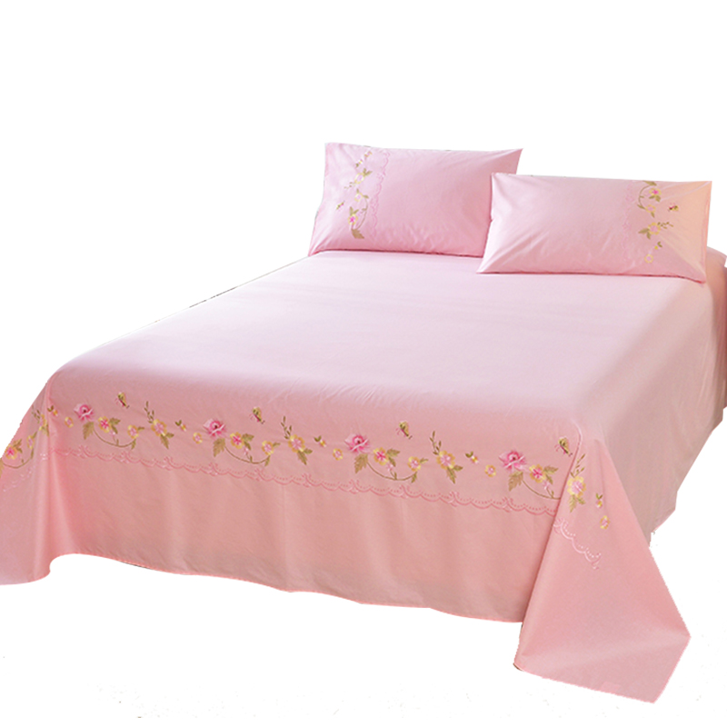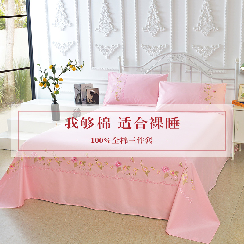 纯棉床单三件套祼睡床上用品北欧风粉色绣花单人双人全棉被单单件