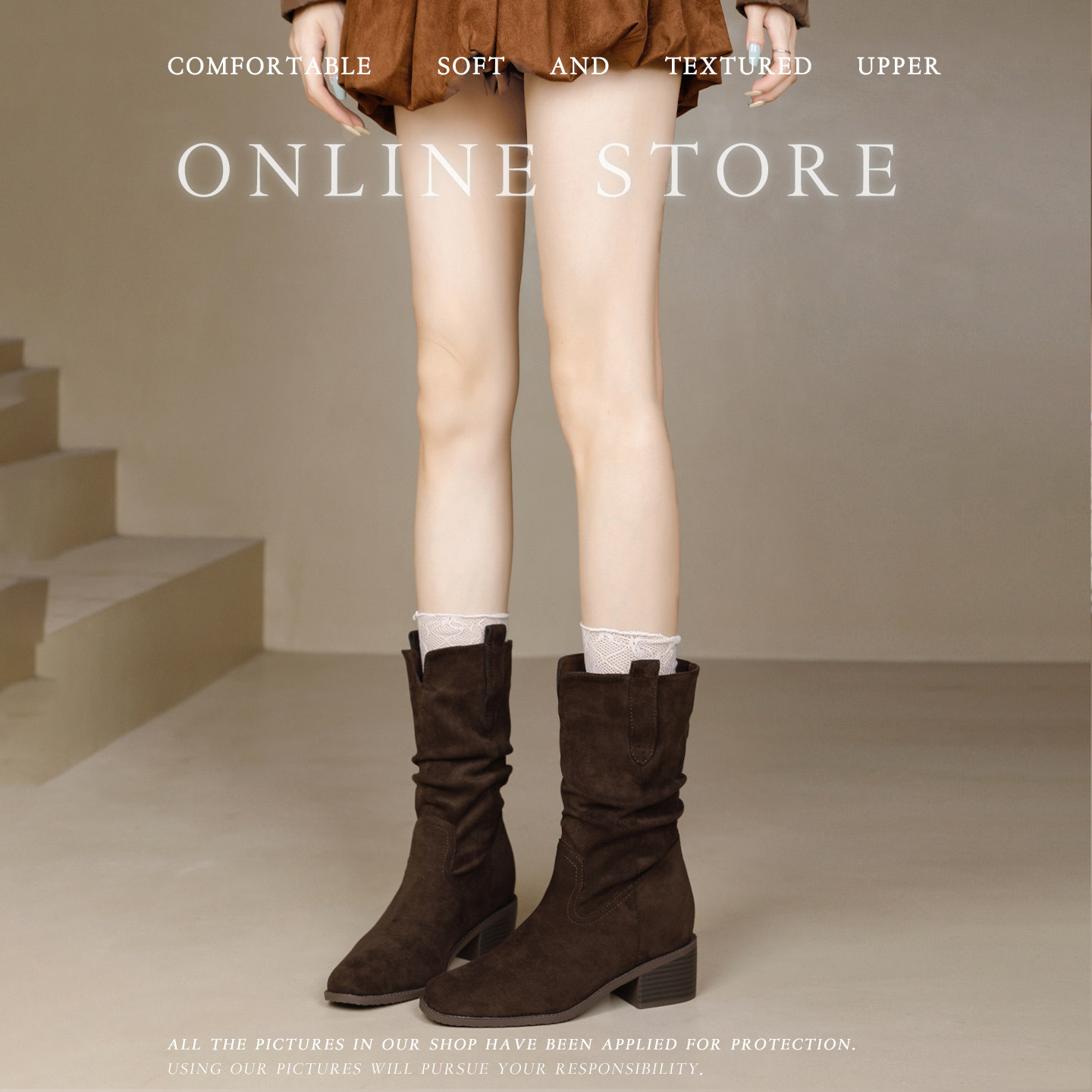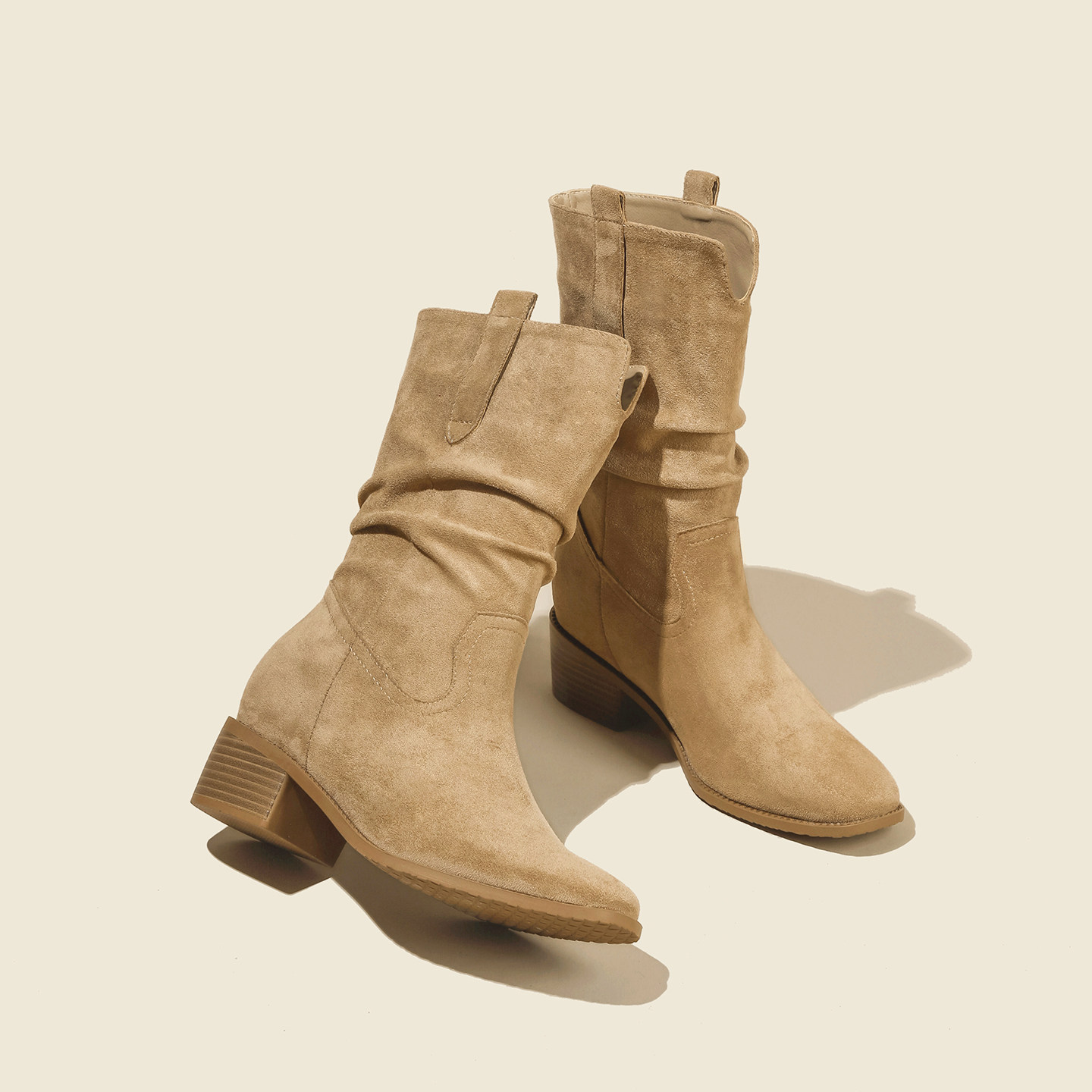 高跟鞋粗跟西部牛仔中筒短靴女2025新款秋冬加绒马丁靴大码女靴41