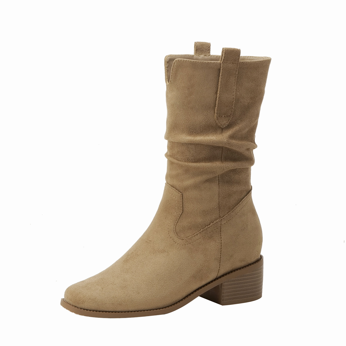 西部牛仔冬季尖头修面皮胶粘鞋