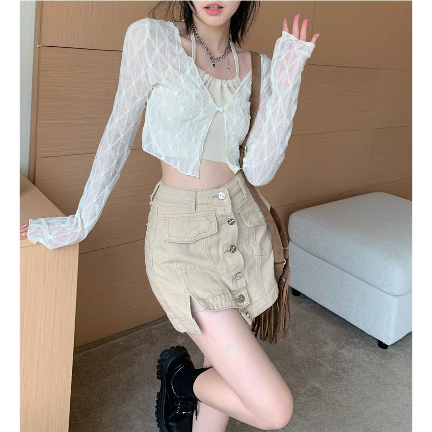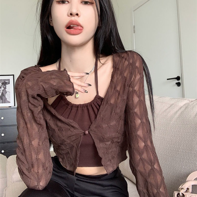 防晒上衣女披肩夏季冰丝针织辣妹小开衫配吊带外搭小坎肩薄纱上衣