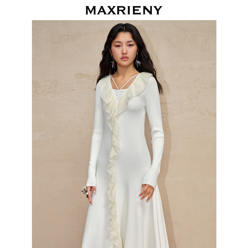 【奥莱】MAXRIENY精致复古浪漫优雅连衣裙修身裙子