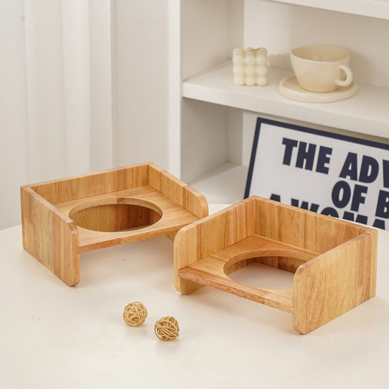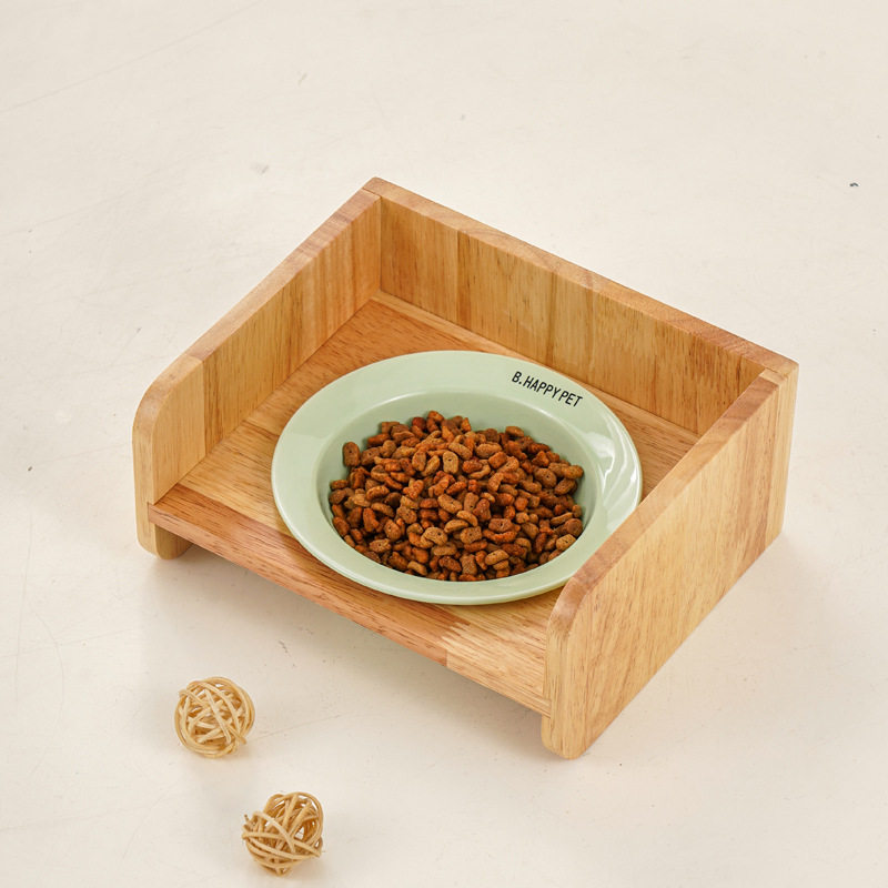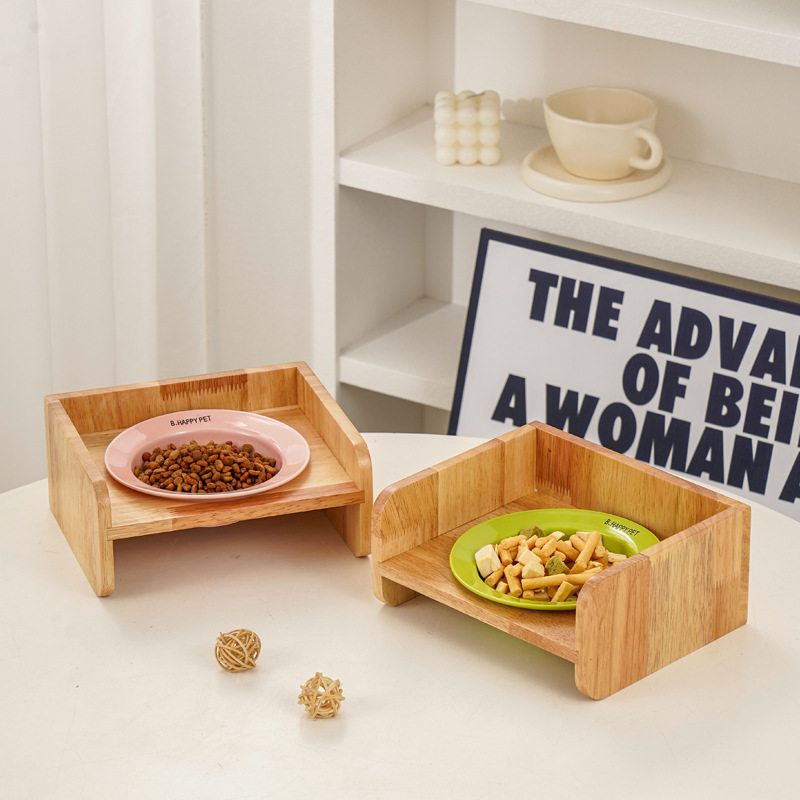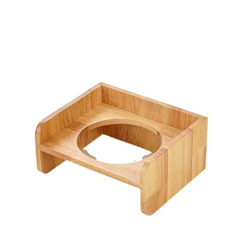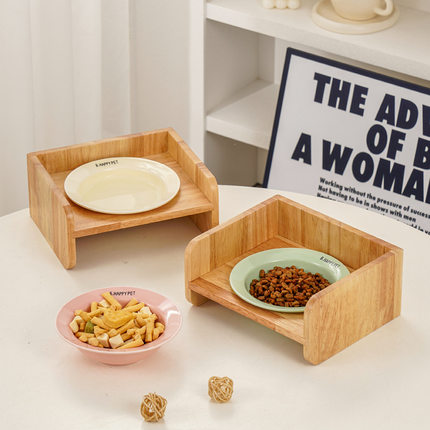 飞碟碗橡木架猫碗陶瓷增高架幼猫猫食盆护颈架子宠物碗狗碗木架