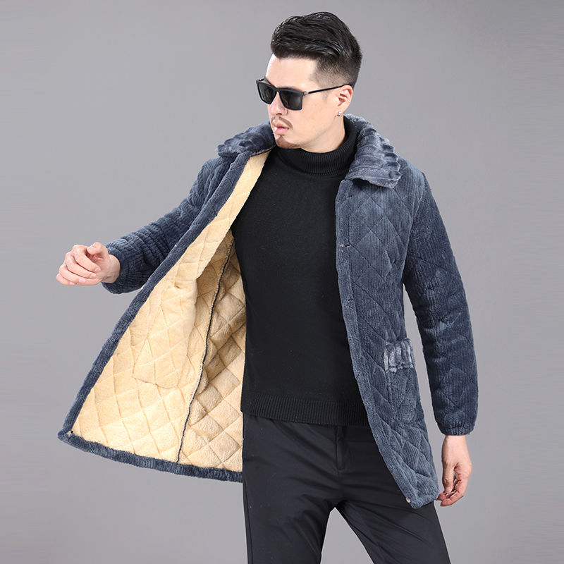 四川省服男士加绒加厚罩衣冬季棉服宽松中长款保暖工作服棉衣外套