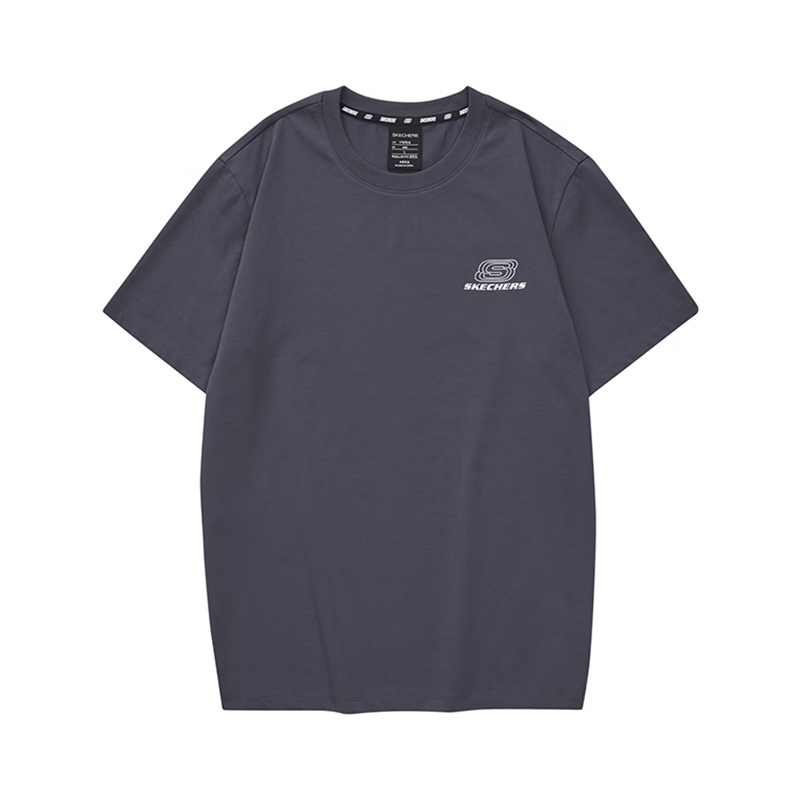 斯凯奇中性针织短袖T恤衫男女同款简约半袖快干时尚运动休闲上衣