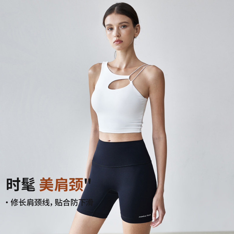 movingtime白色运动背心女带胸垫防震健身文胸普拉提瑜伽服内衣夏