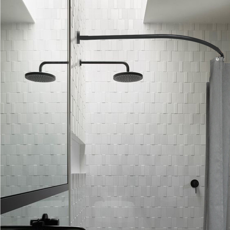 免打孔伸缩杆弧形杆不锈钢浴帘杆卫生间淋浴房l形半u型浴室浴杆架