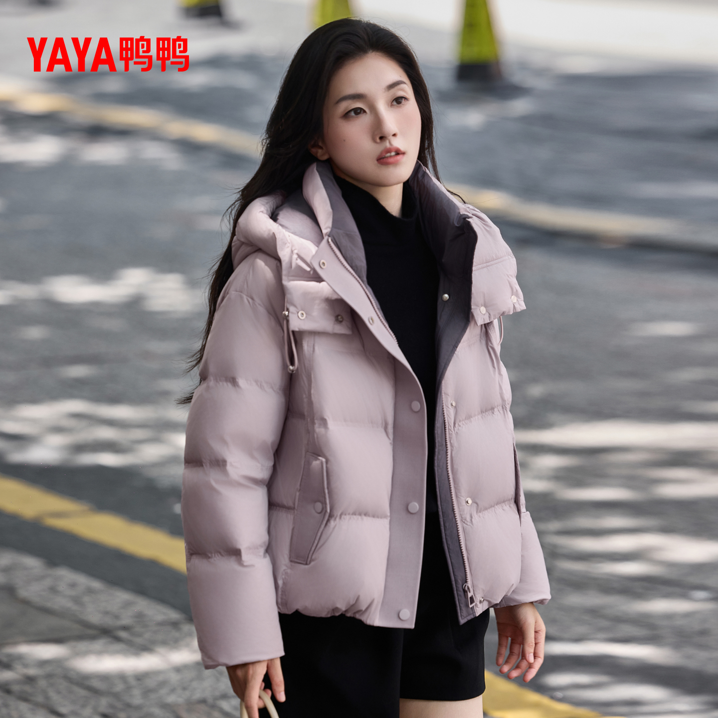 鸭鸭羽绒服女士2025秋冬短款宽松连帽百搭鸭绒加厚时尚保暖外套Y