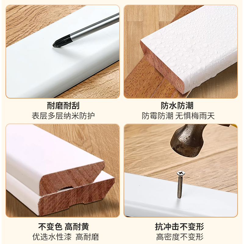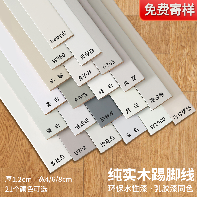 番龙眼纯实木踢脚线肤感莫兰迪木质地板地脚线菱花白色烤漆贴脚线