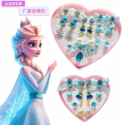 儿童耳饰2-5-8岁 宝宝无耳洞耳夹可爱卡通蝴蝶防耳痛艾莎公主耳环