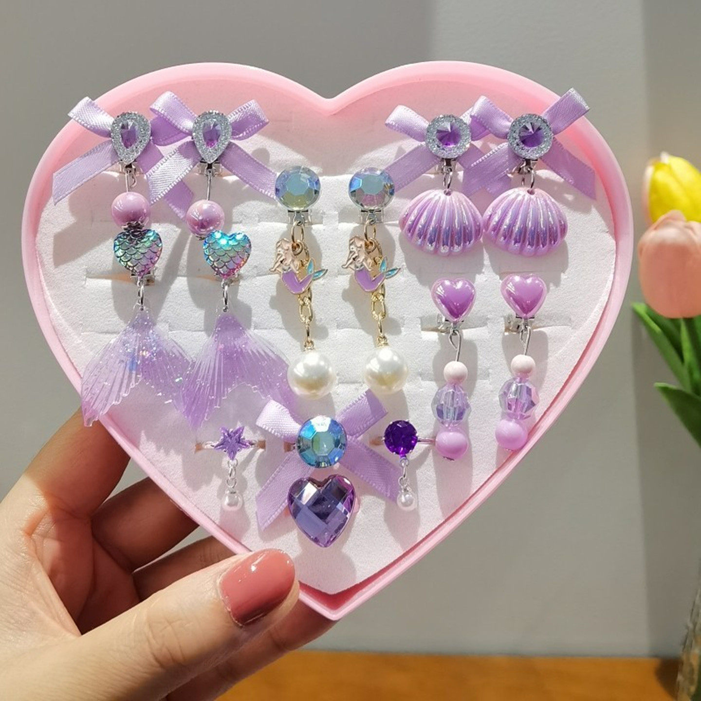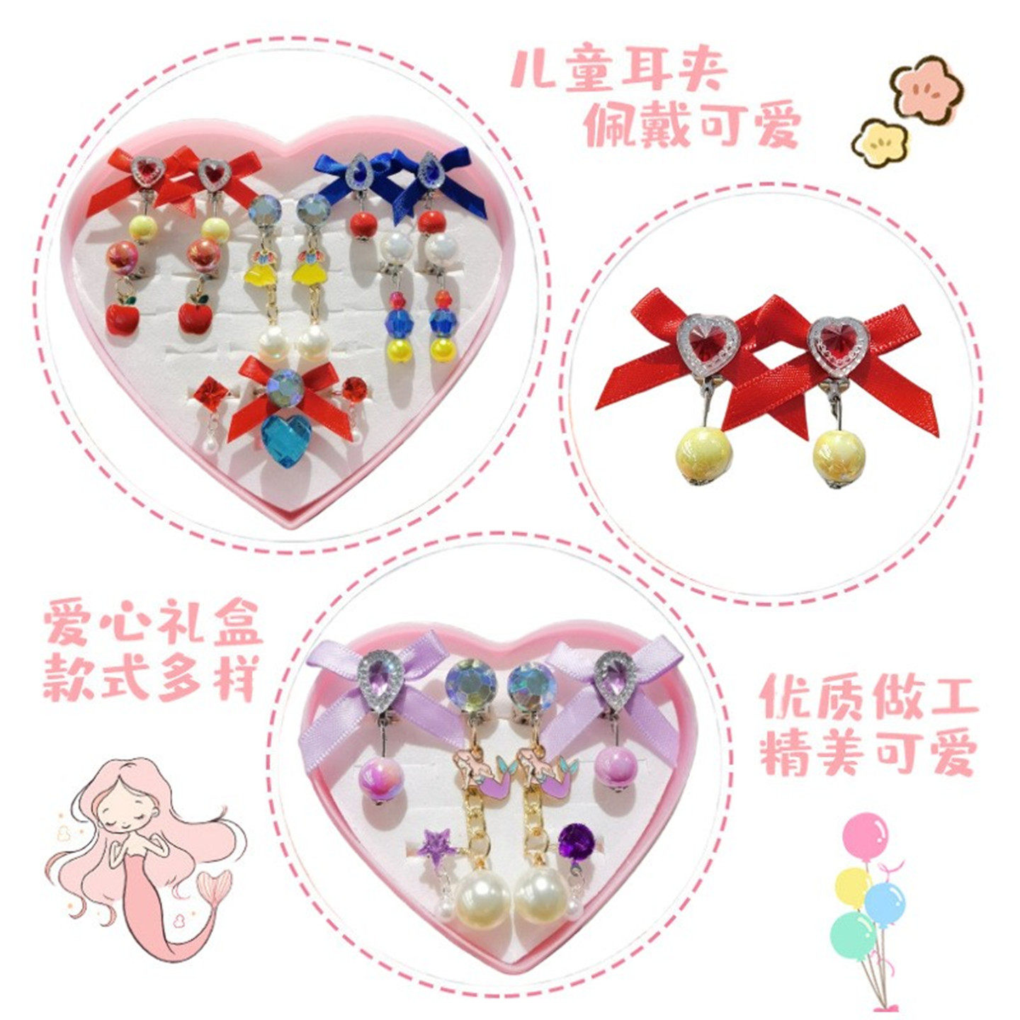 女童耳夹可爱艾莎公主美人鱼耳环