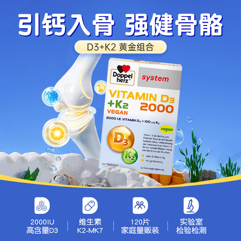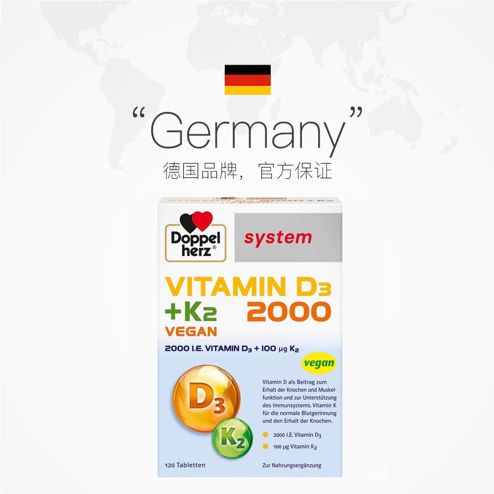 【自营】德国双心维生素D3 2000IU+K2成人中老年营养补充片剂60片