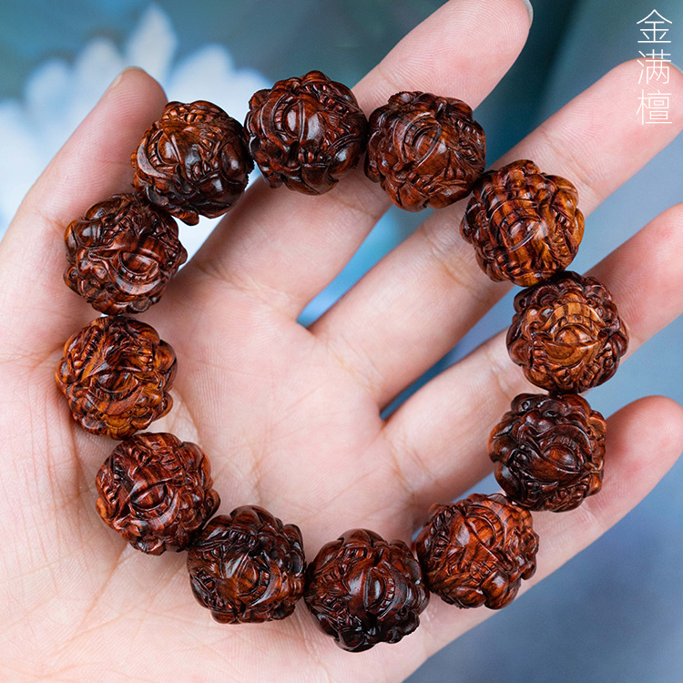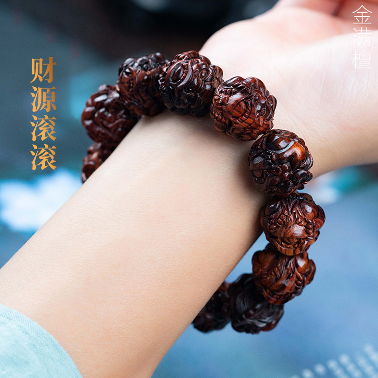海南黄花梨散珠招财貔貅紫油梨木diy手串配饰单颗圆珠子佛珠手链