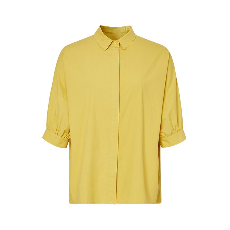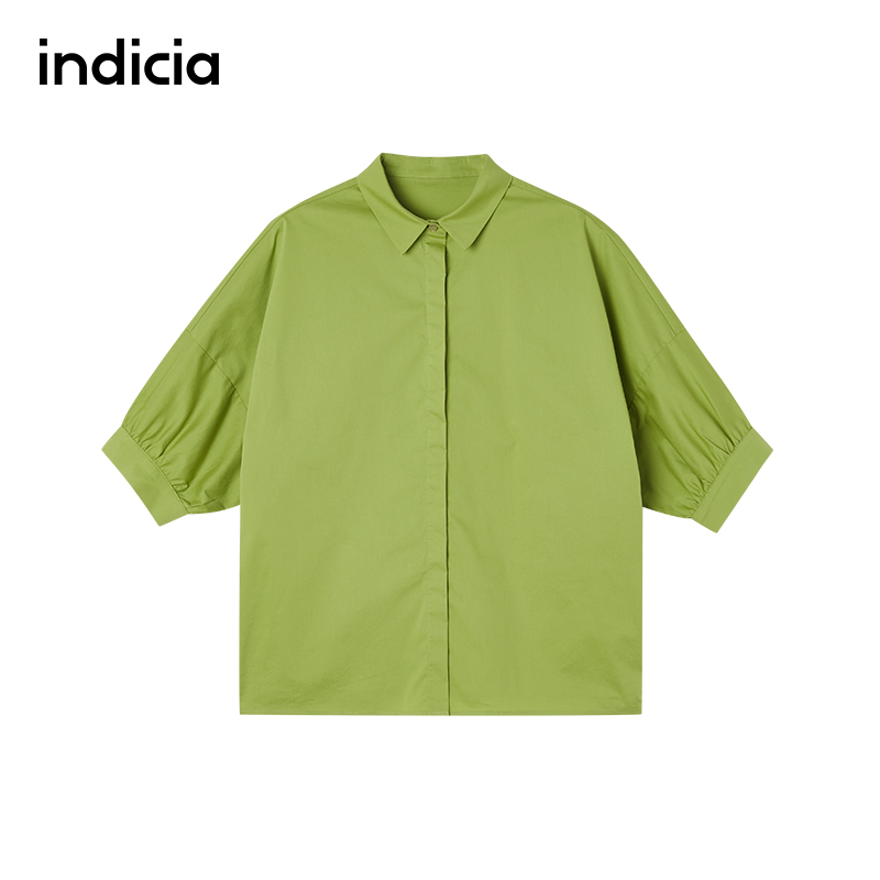 indicia 纯棉衬衫绿色上衣蝙蝠袖短袖衬衣纯色夏季标记女装