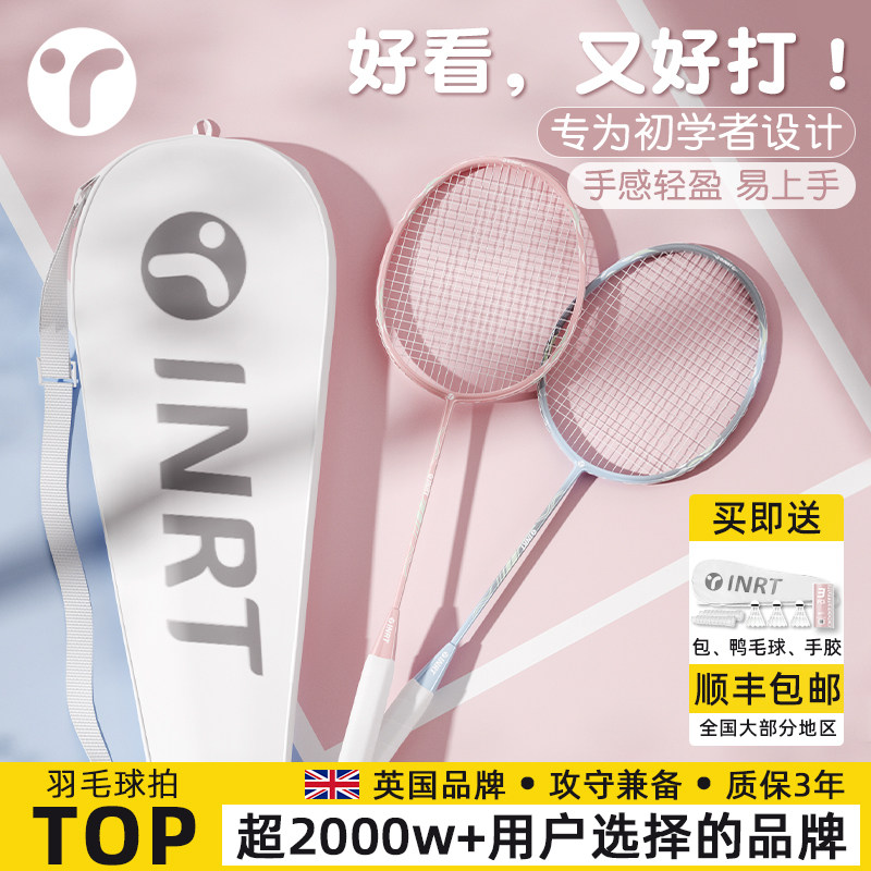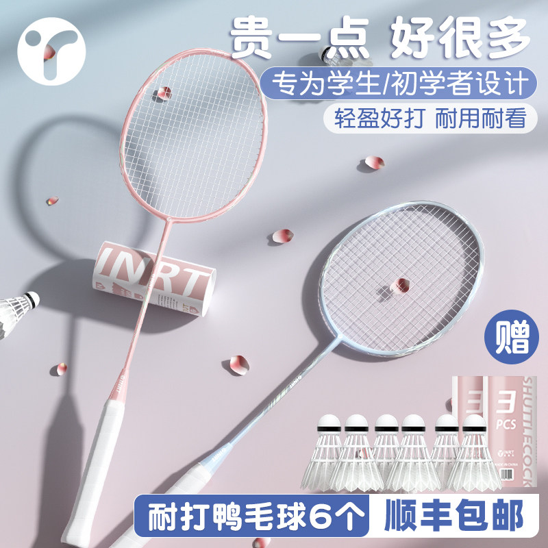 羽毛球拍正品旗舰店球拍女生成人儿童耐打单双拍套装碳素纤维超轻