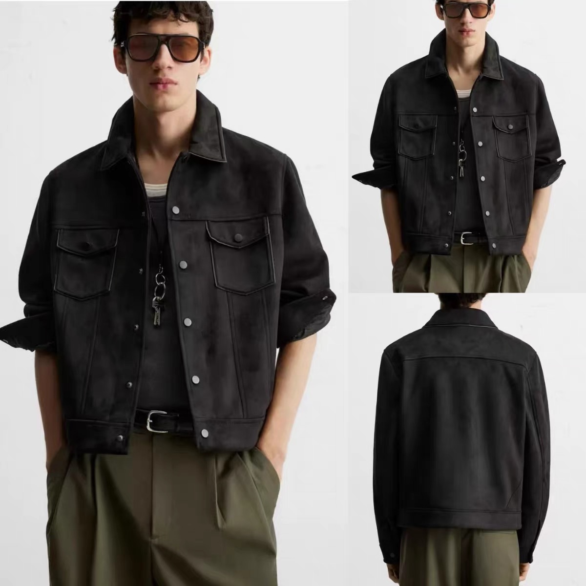 柜699!ZA秋季新品男短款反绒皮效果修身直筒夹克外套8281288 704