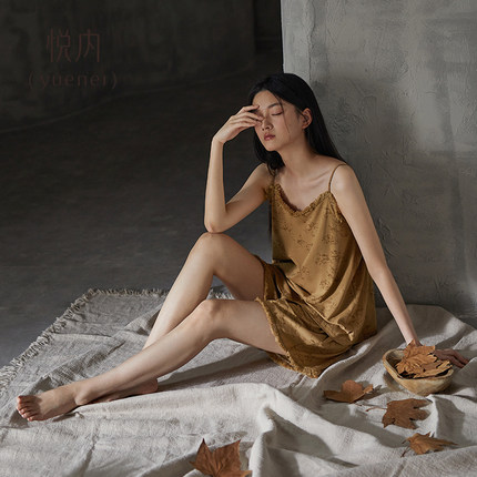 悦内带胸垫一体睡衣女士夏季夏款吊带背心短裤纯棉家居服两件套装