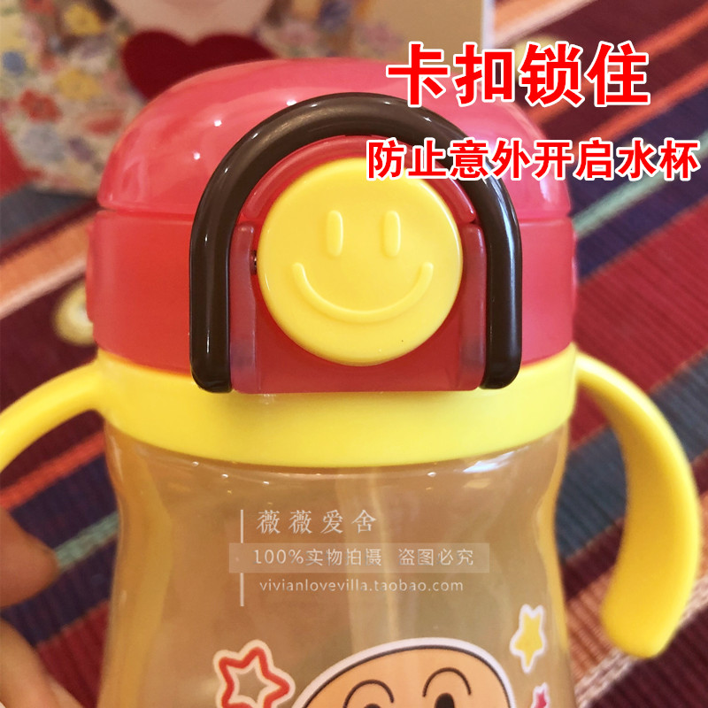 日本LEC面包超人宝宝儿童双耳吸管训练杯学习杯冲奶饮料杯正品