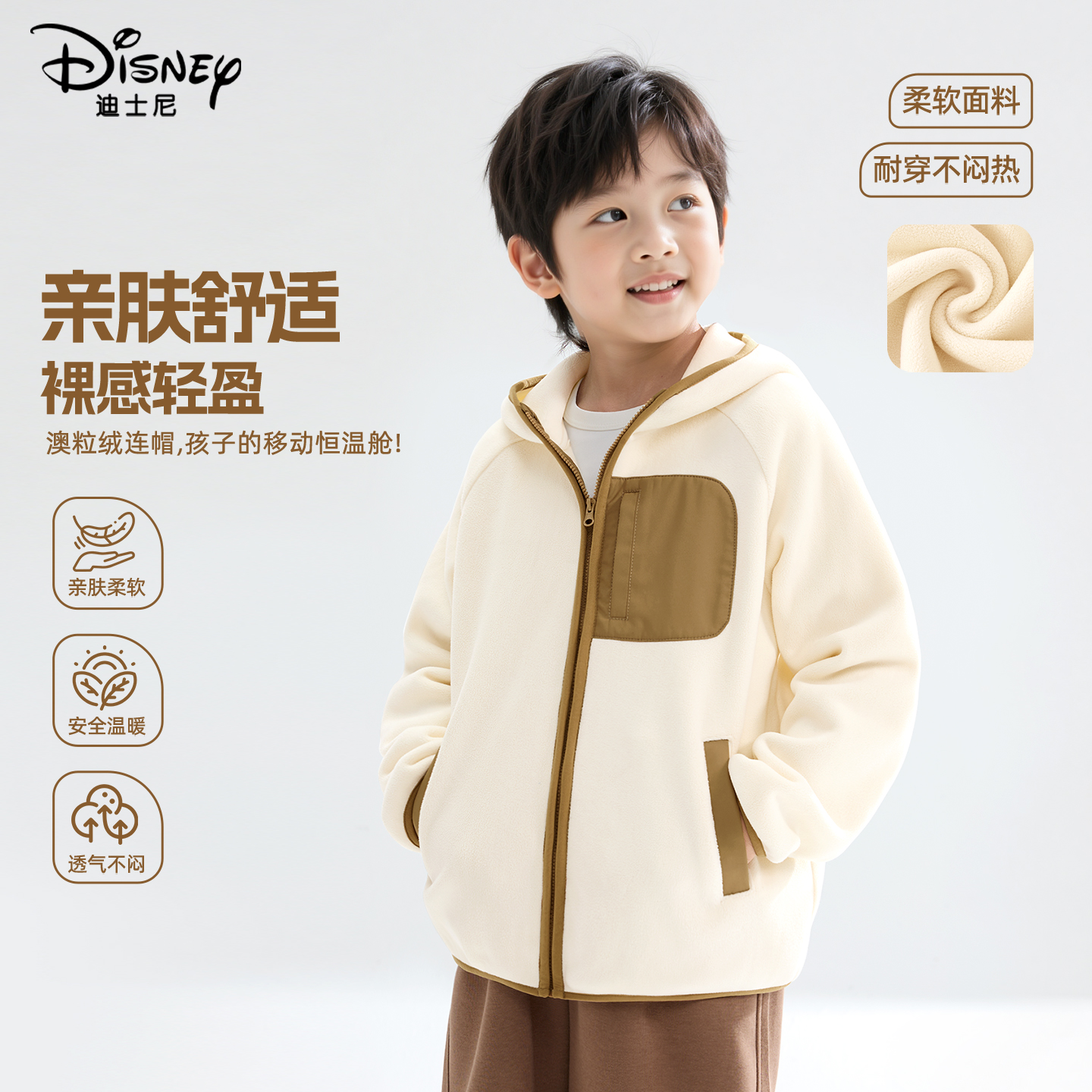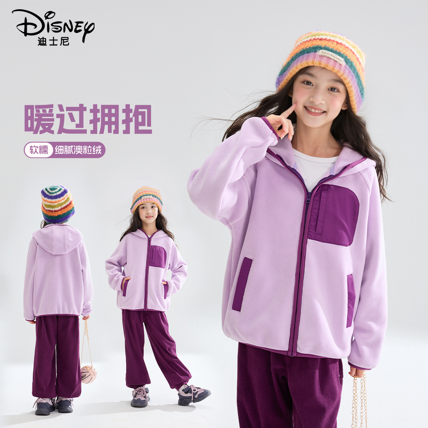 迪士尼新款男女童时尚摇粒绒外套
