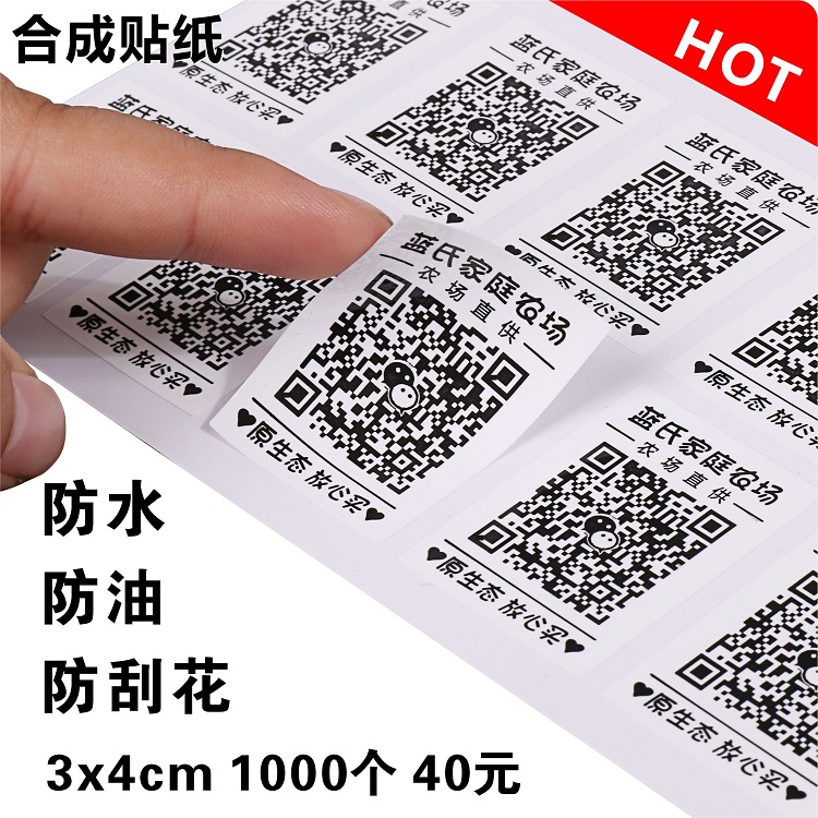 打印透明亚银牛皮纸微信标签二维码贴纸定做微商不干胶小广告制作
