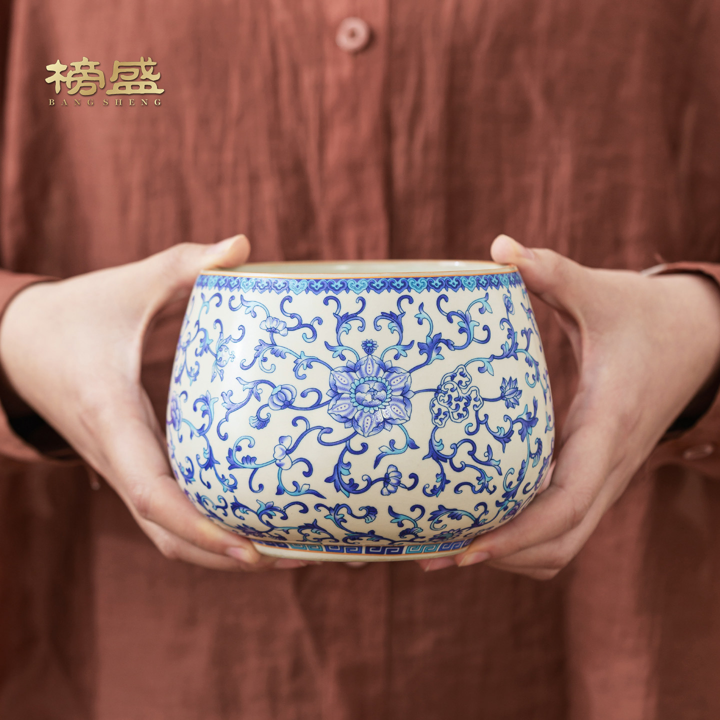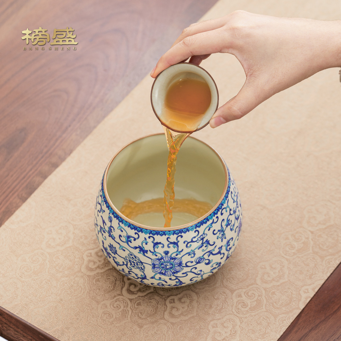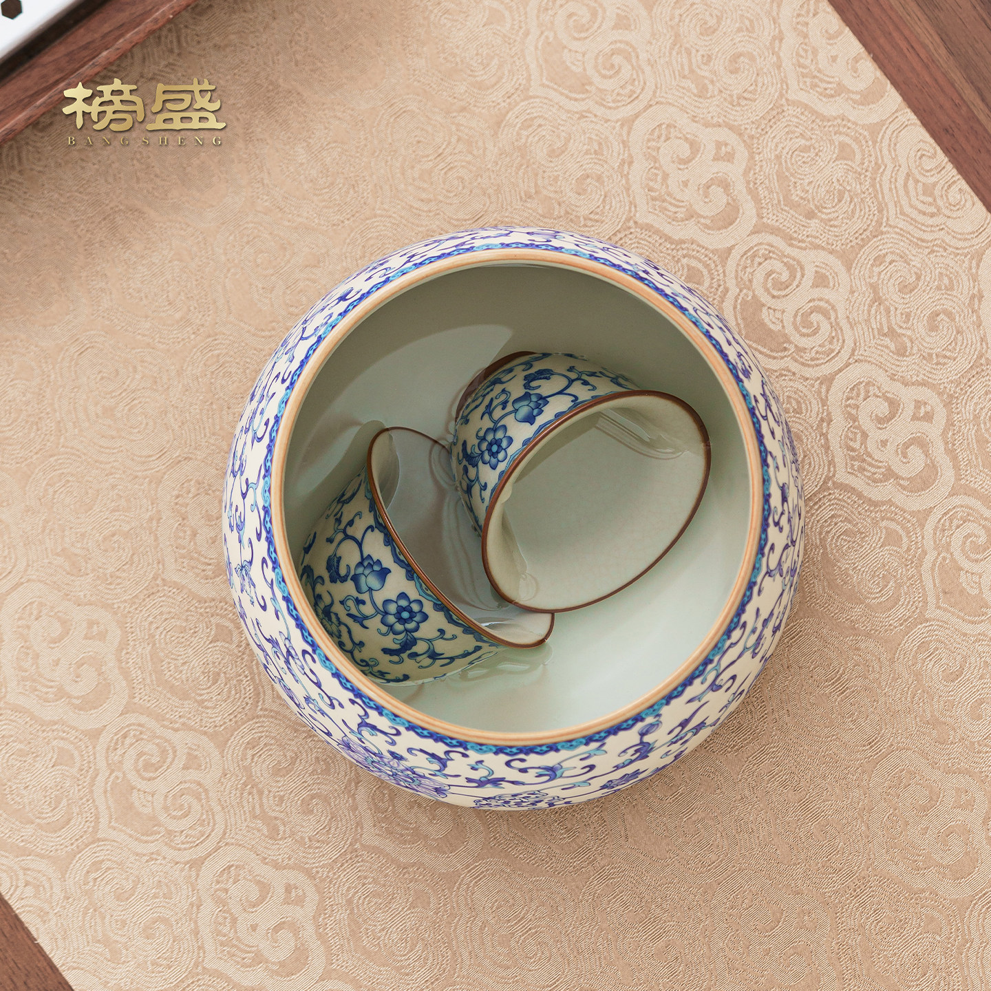 榜盛青花汝窑茶洗陶瓷茶洗建水大容量茶渣缸中式功夫茶具茶道配件