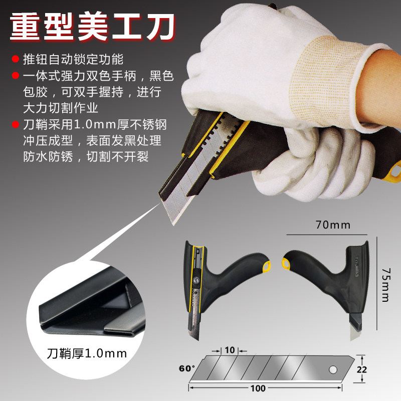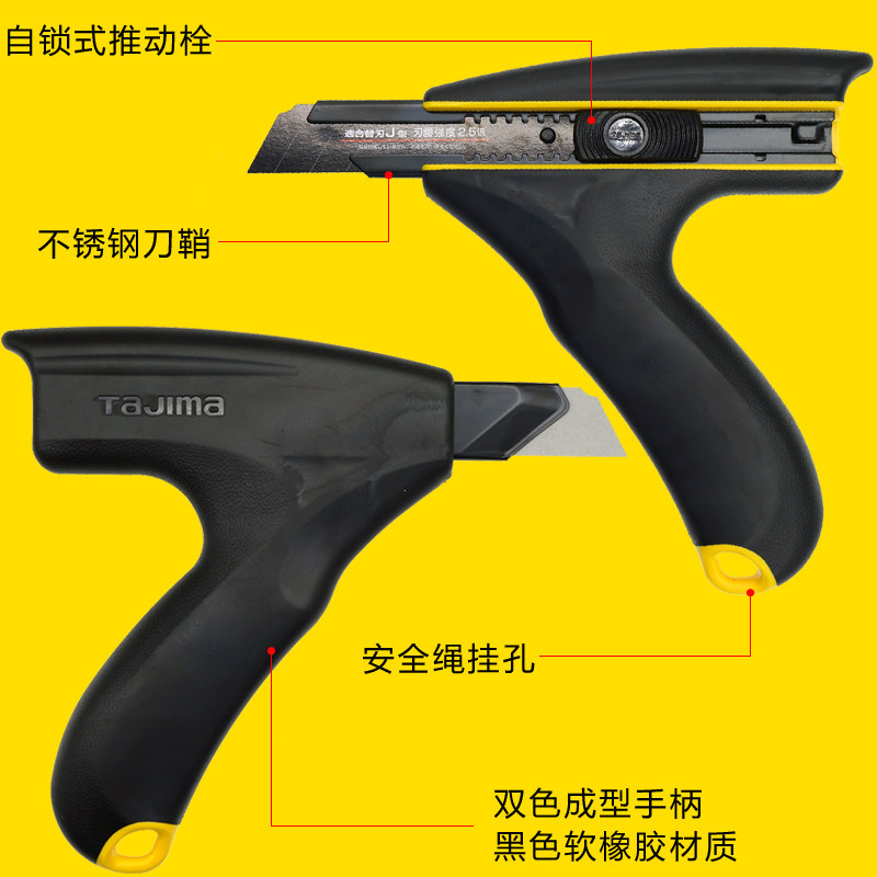田岛美工刀22mm重型硅胶刀皮带板材皮革切割工具不锈钢枪形美工刀