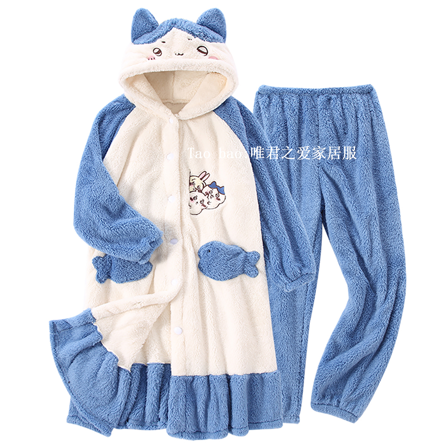 冬季chiikawa小八睡袍吉伊卡哇睡衣女珊瑚绒加厚加绒连帽日系可爱
