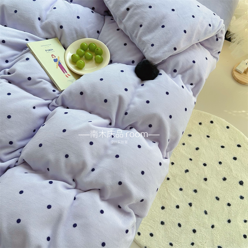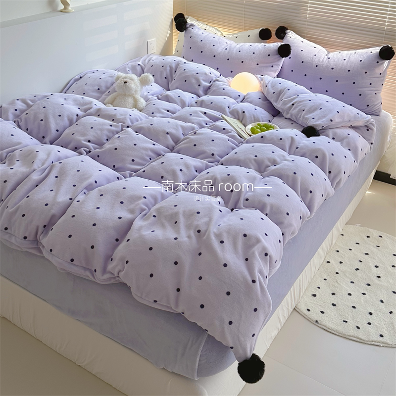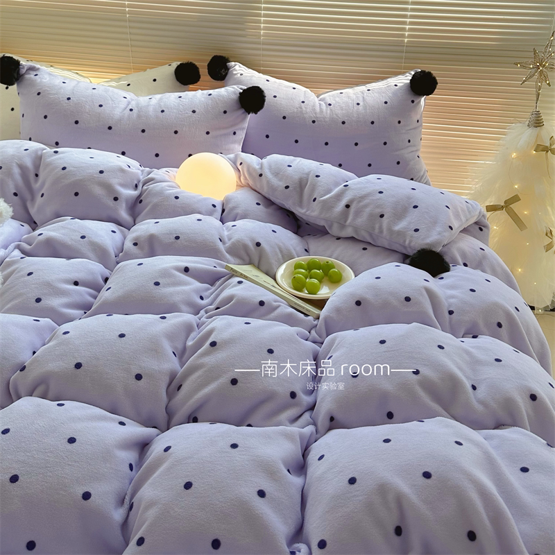ins紫色波点四件套加厚牛奶绒