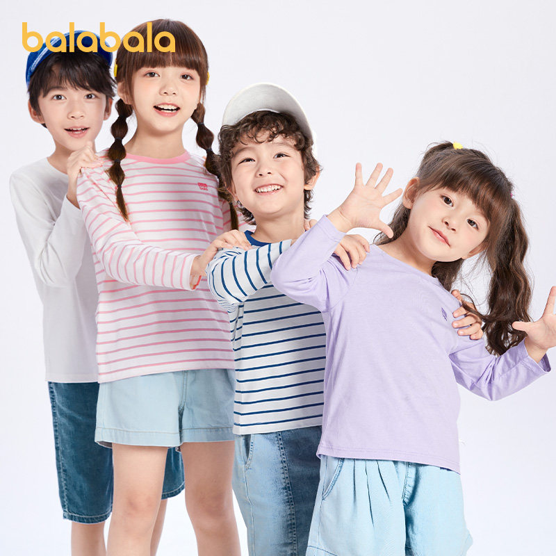 巴拉巴拉男童女童长袖T恤儿童宝宝条纹纯棉上衣亲子春装新款童装