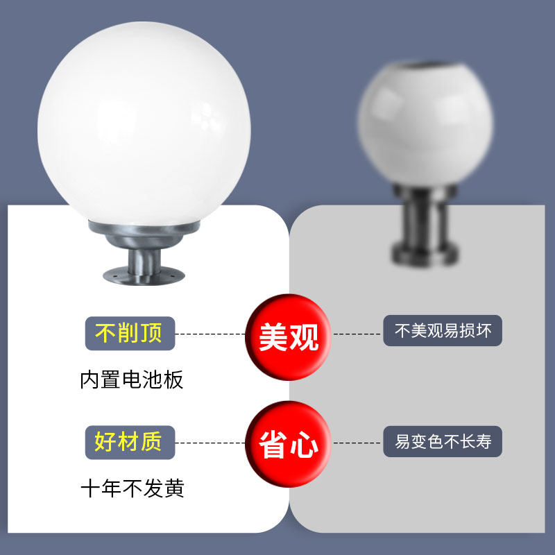 太阳能柱头灯圆球形户外大门庭院外墙灯防水别墅柱子X灯球型围墙