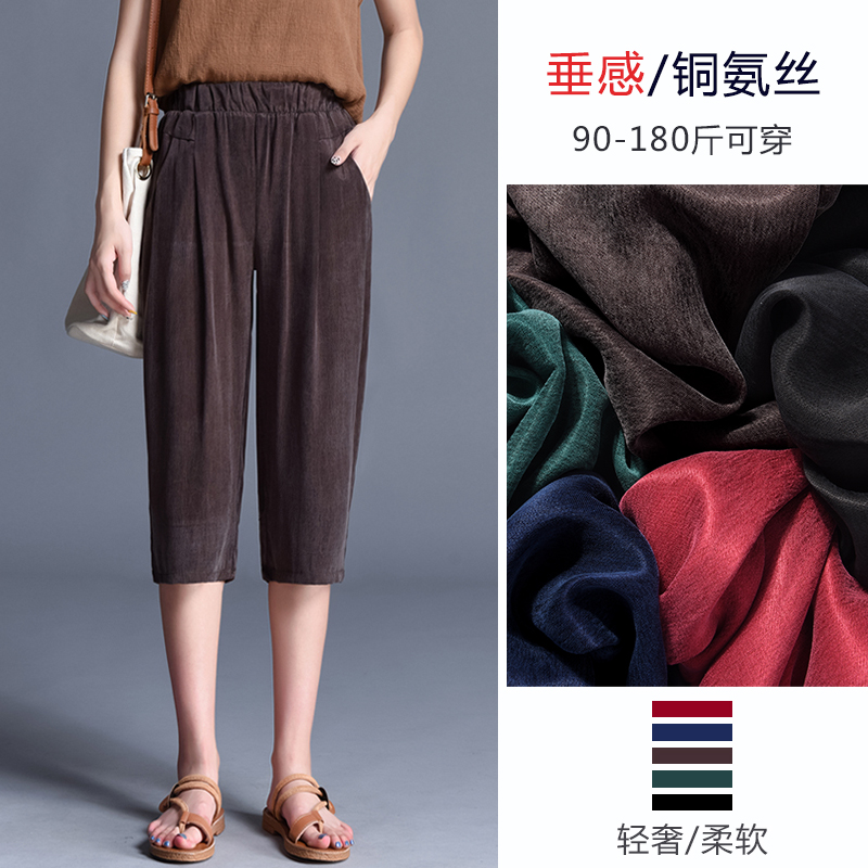 七分裤女夏季薄款铜氨丝裤子哈伦五分裤宽松大码高腰妈妈休闲中裤