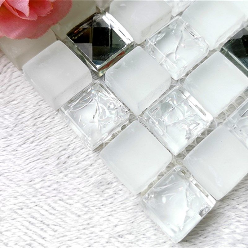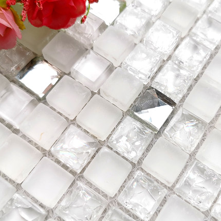 白色水晶玻璃马赛克瓷砖背景墙玄关浴室卫生间马赛克墙贴装饰防滑