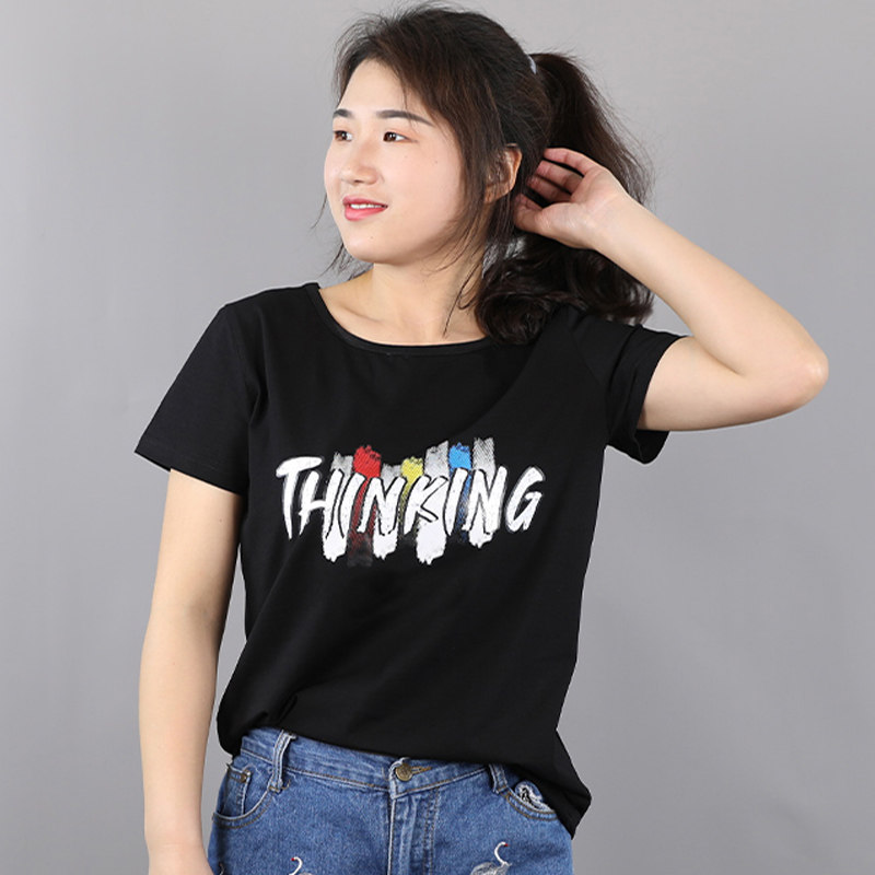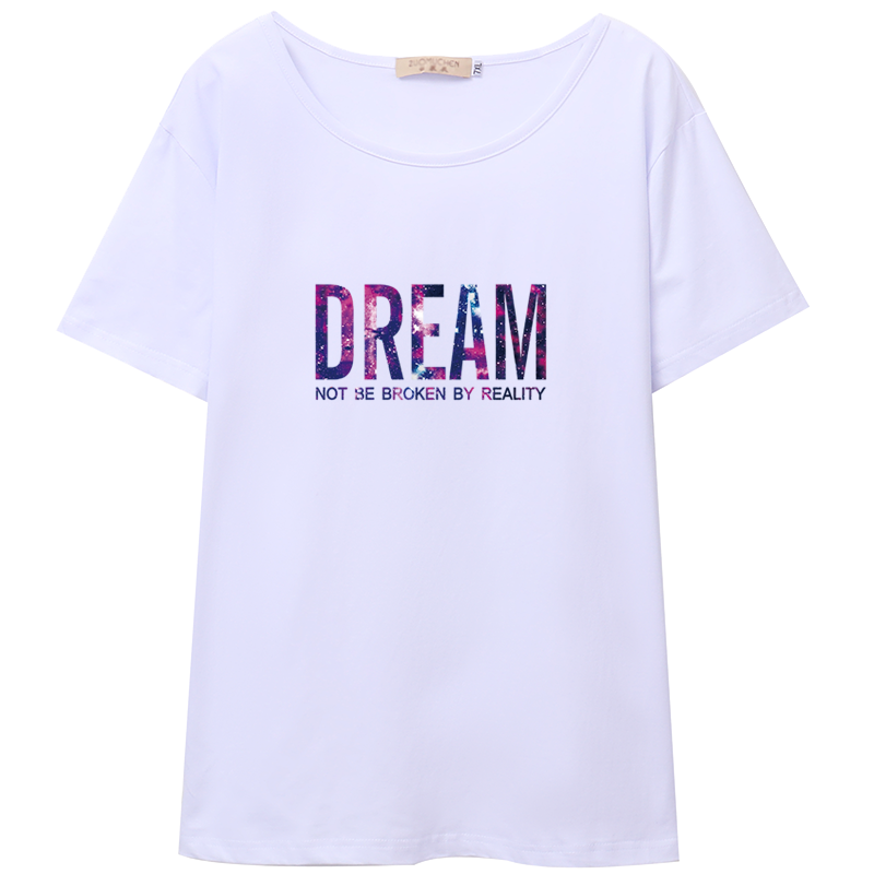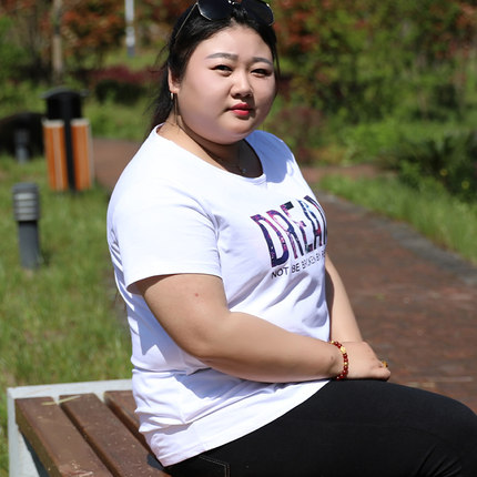 加肥加大正肩白色大码女士t恤短袖女字母宽松200斤胖mm纯棉短款夏