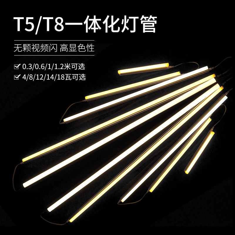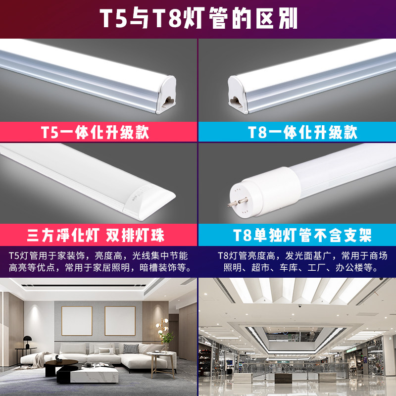 led灯管t5三防净化T8日光灯超亮长条40w家用双管一体化全套1.2米