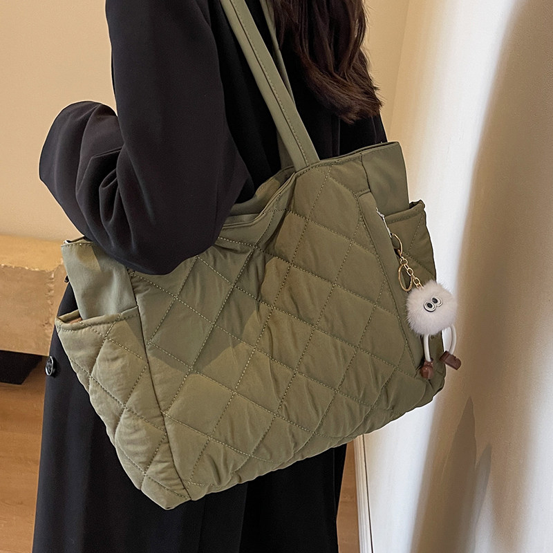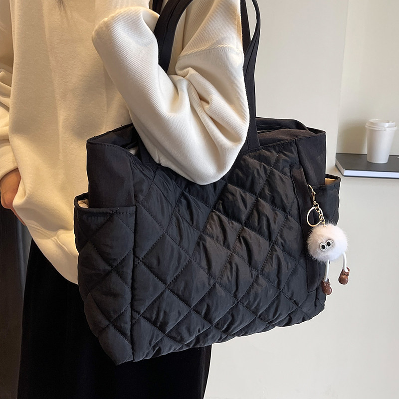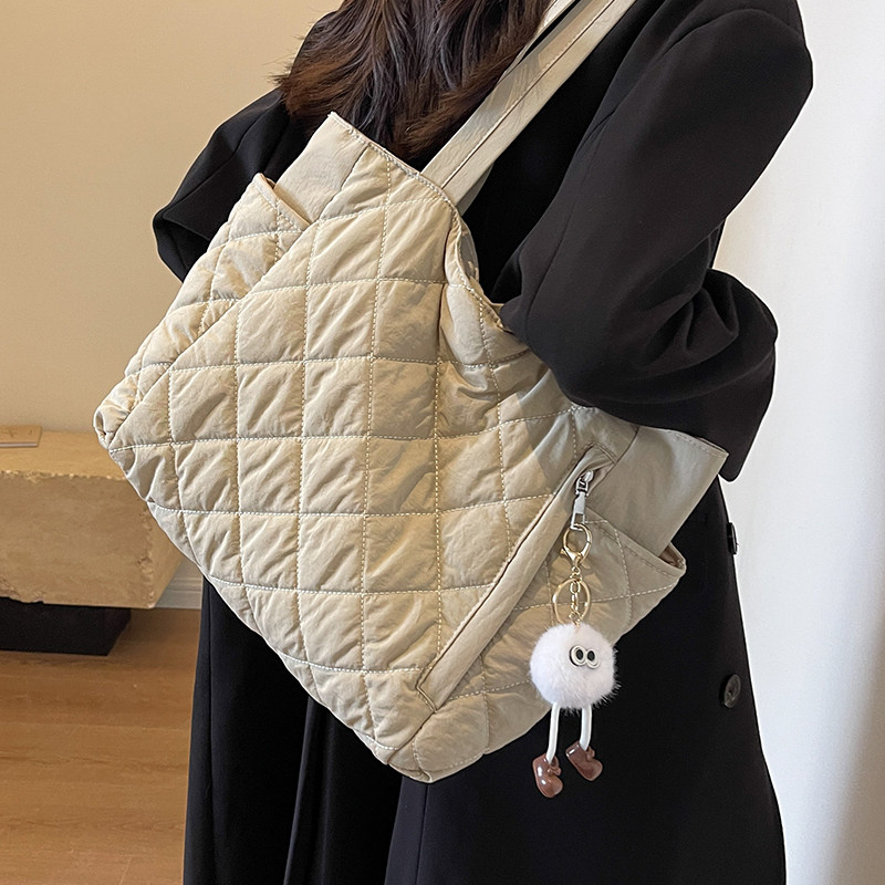 时尚通勤腋下大容量包包女2025新款菱格帆布托特包小众百搭单肩包