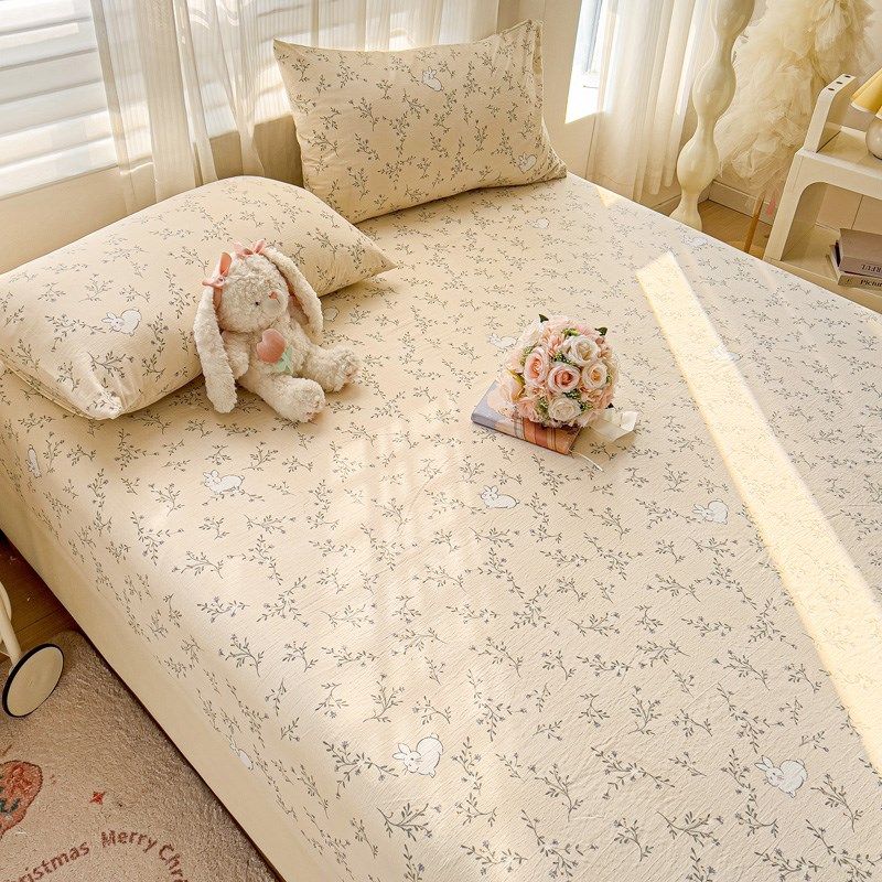 超柔双层纱水洗棉床笠罩单件非全棉纯棉床单防滑席梦思床垫保护套