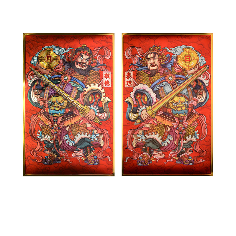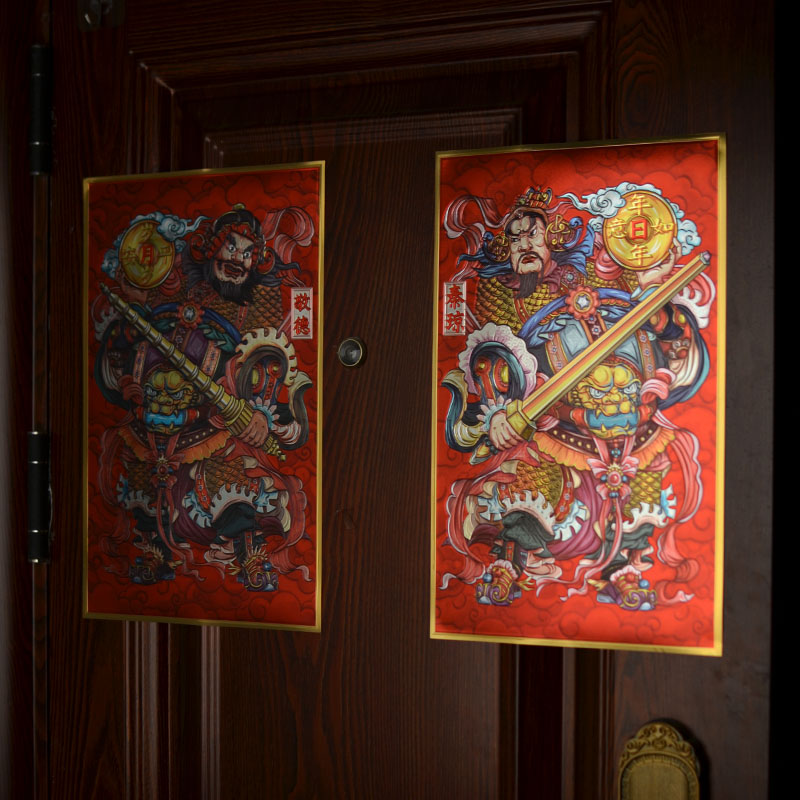 门神2026新年春节年画高档立体浮雕防水金箔门贴装饰秦叔福尉迟恭