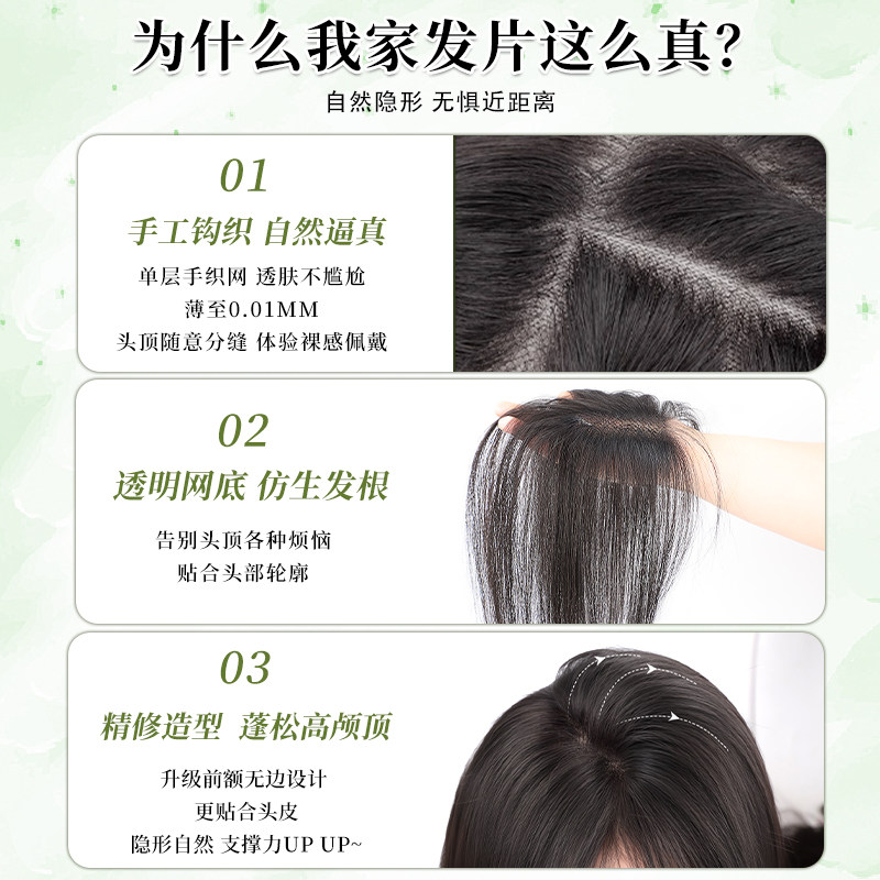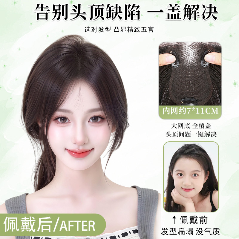 梵妮丝假发女片头顶增发量蓬松高颅顶遮白发轻薄款八字刘海假发片