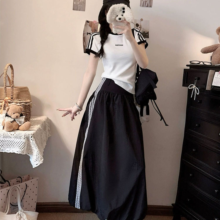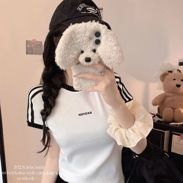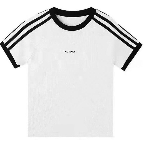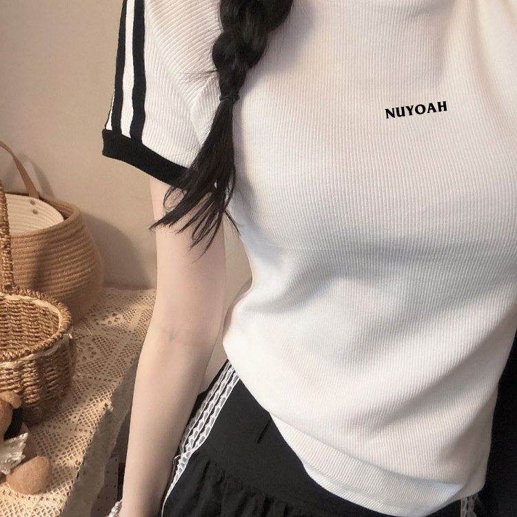 美式白色正肩条纹短袖T恤女2025夏季新款辣妹修身显瘦短款小上衣