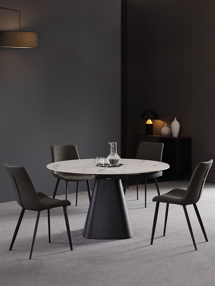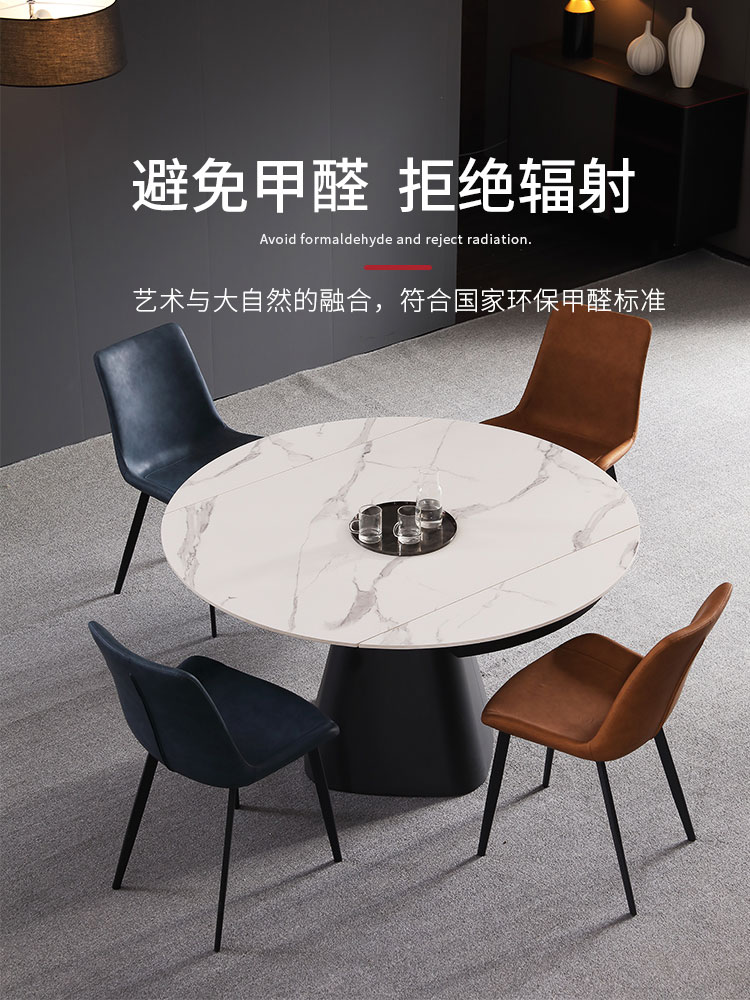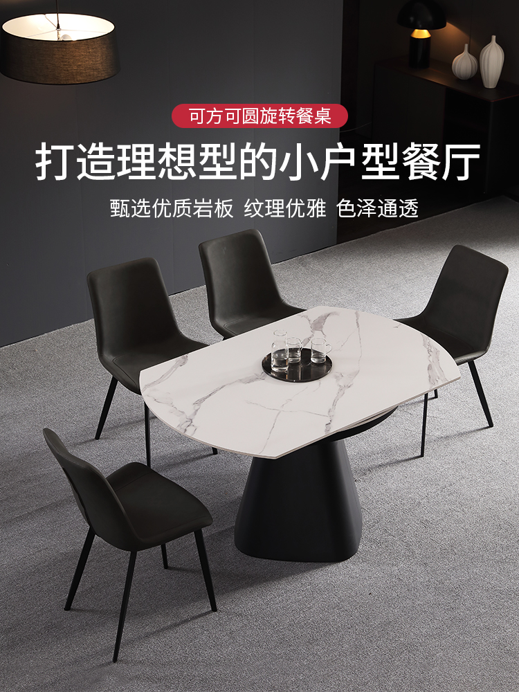 意式可伸缩岩板餐桌小户型多功能旋转折叠家用省空间餐桌可变圆桌