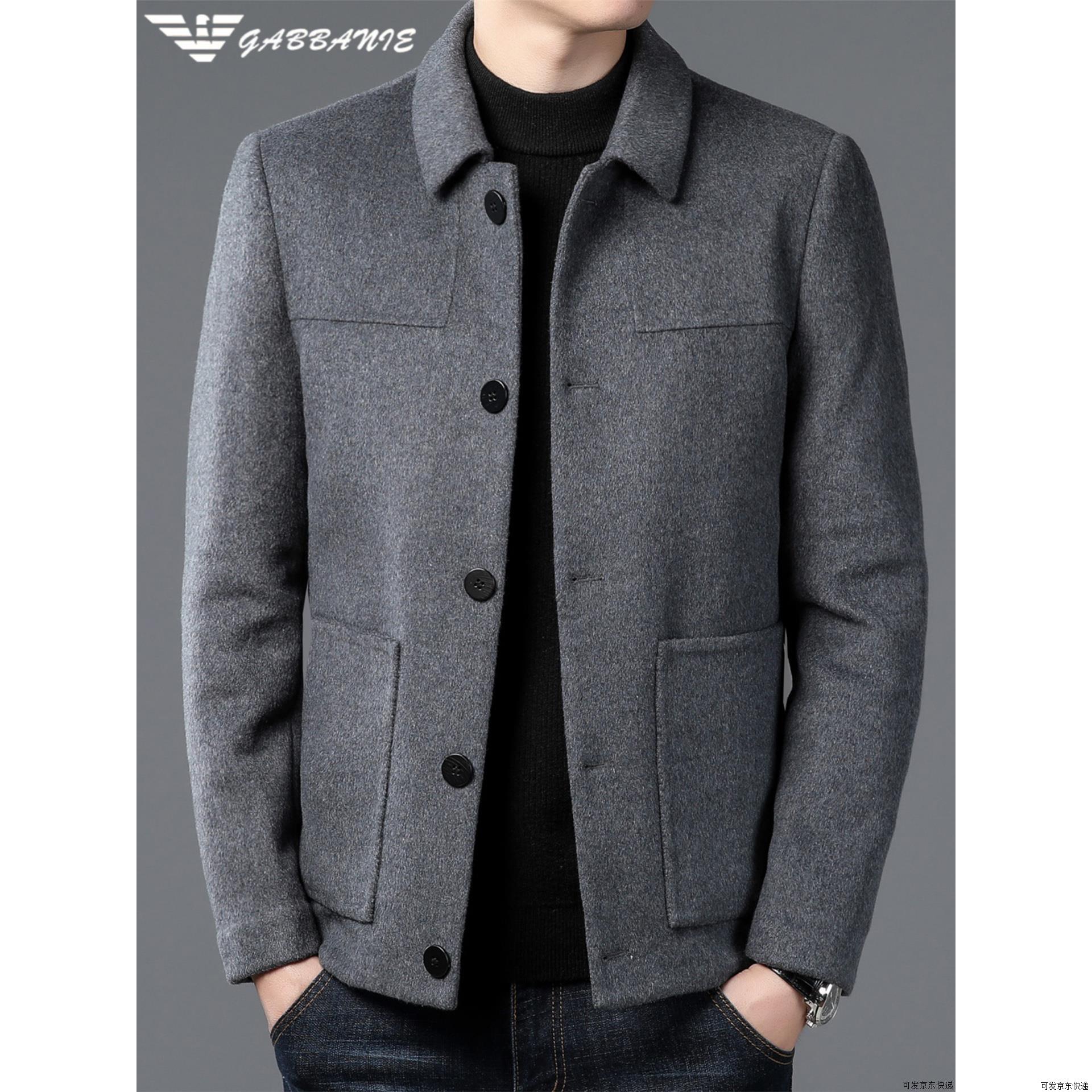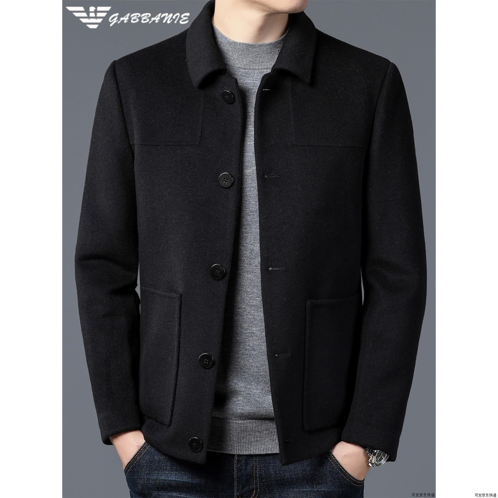 正品意大利双面羊绒大衣男中年秋冬短款翻领夹克羊毛呢子休闲外套