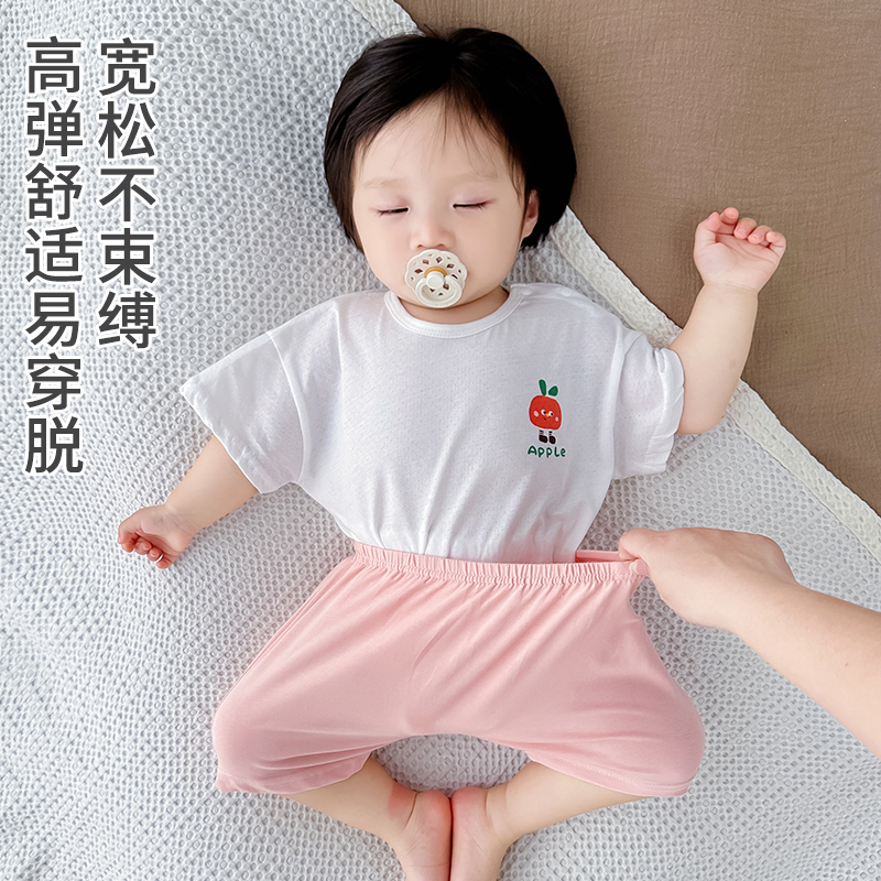 婴儿衣服夏季薄款纯棉小月龄睡衣分体宝宝短袖短裤套装儿童夏装