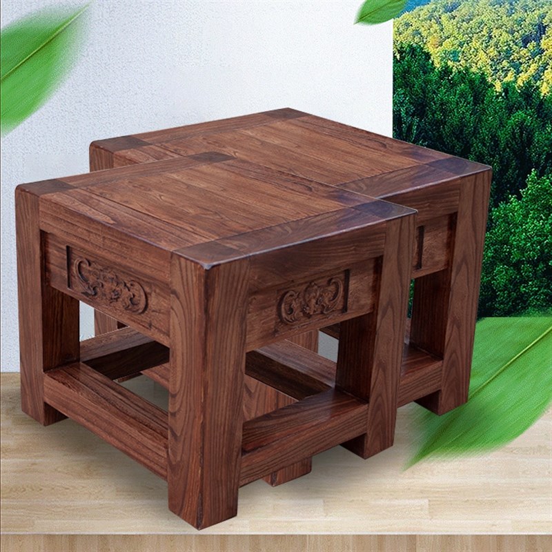 老榆木凳子 实木板凳 家用长方凳 儿童中式动物小方凳 原木四方凳