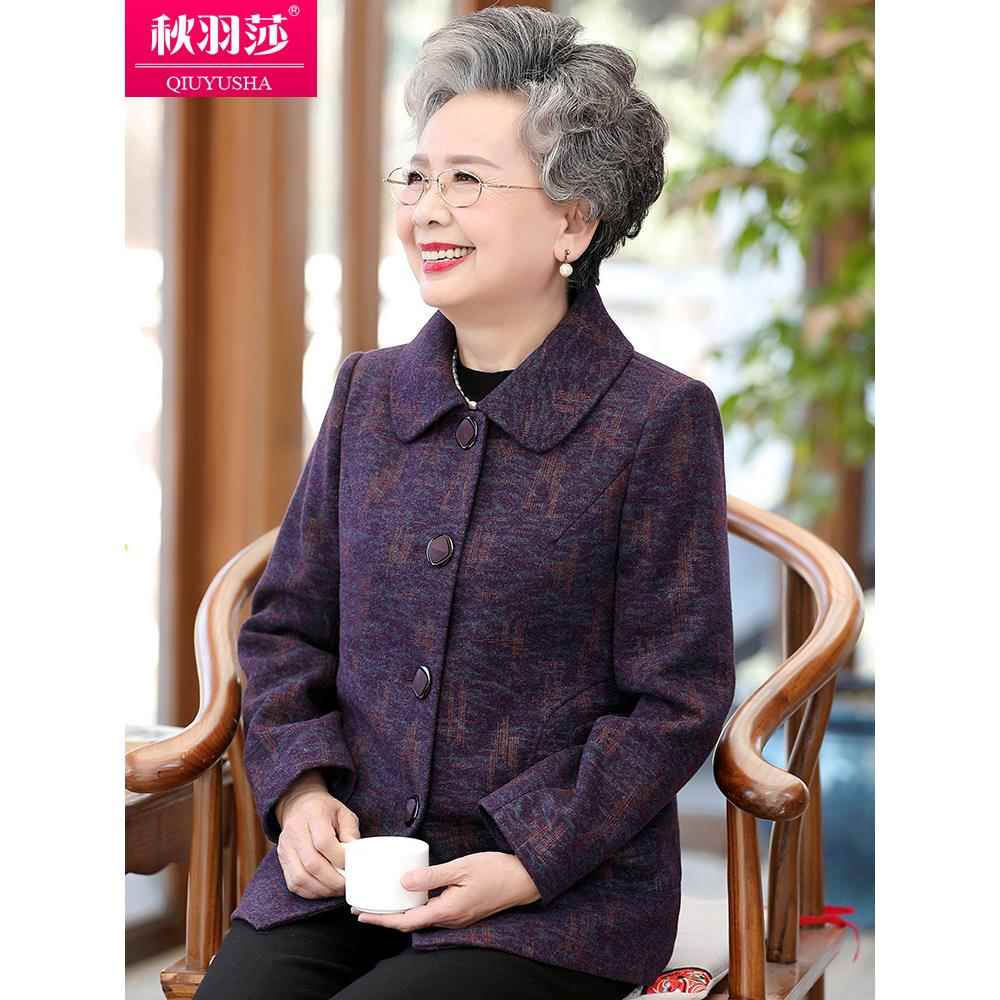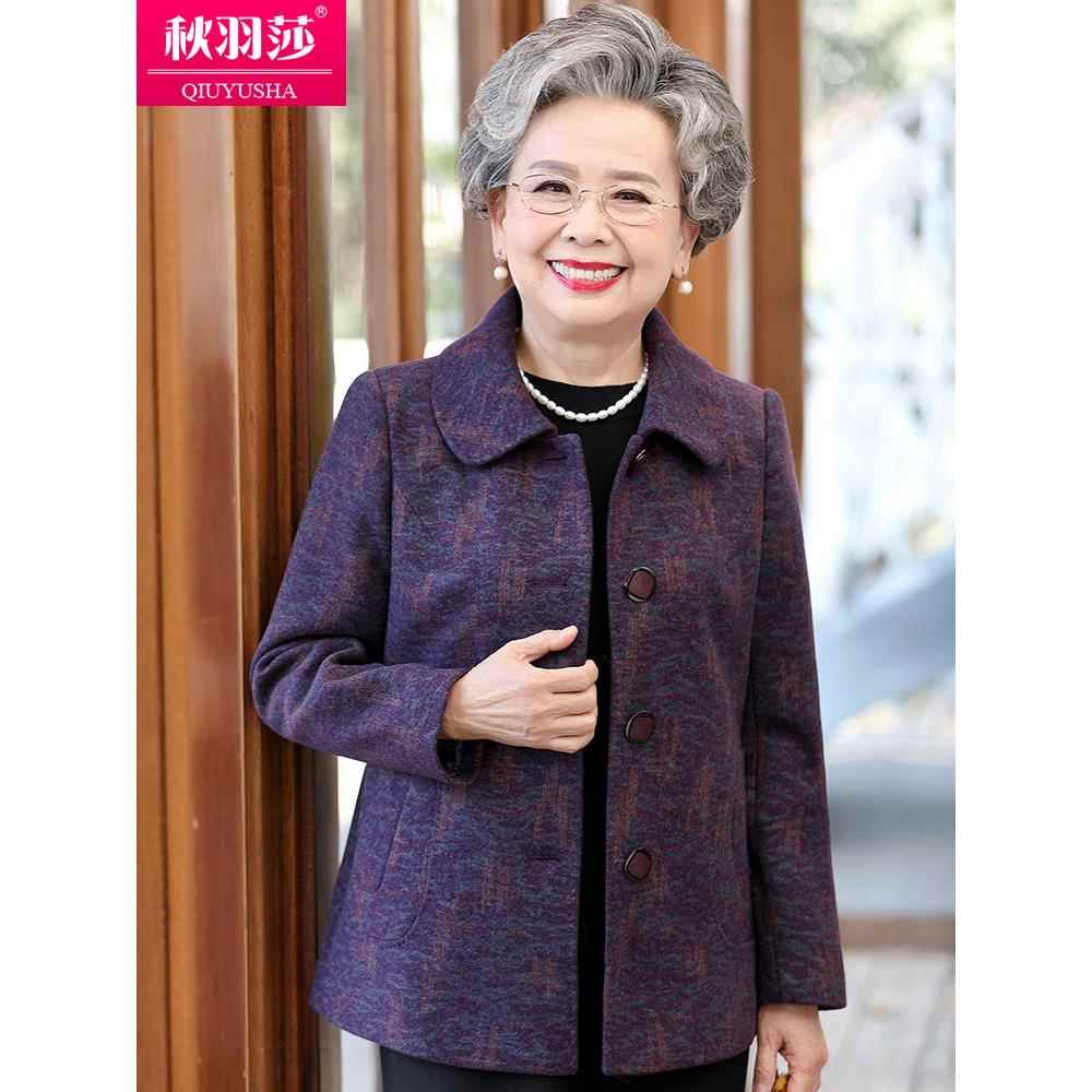 中老年人女装奶奶春装大码妈妈唐装短款太太毛呢外套老人冬装外套