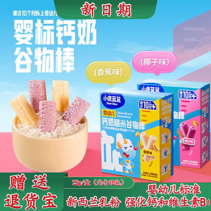 小鹿蓝蓝钙奶黑米谷物棒糙米宝宝零辅食儿童米饼婴幼儿泡芙饼干